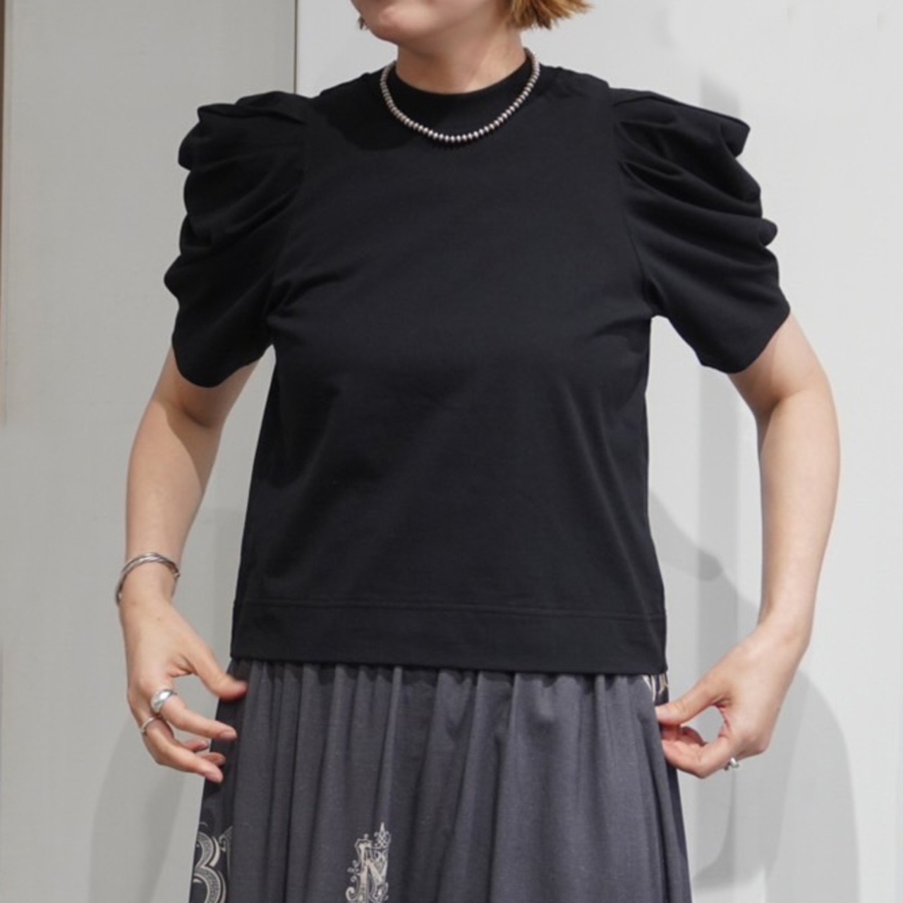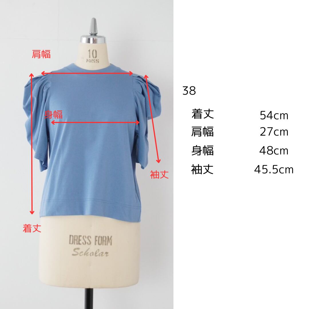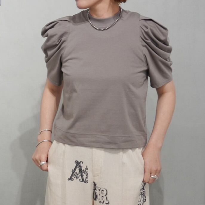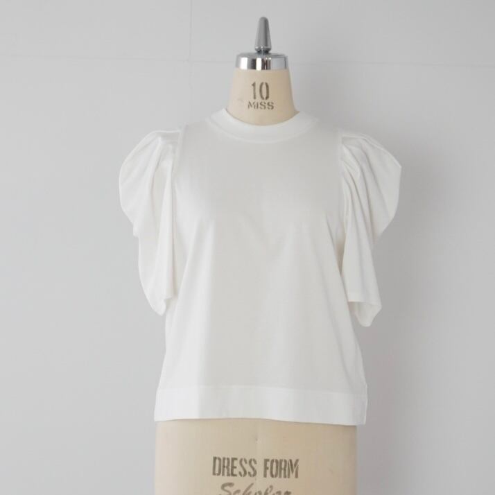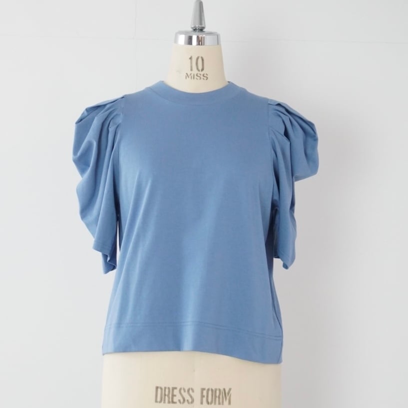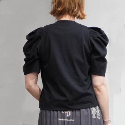 大胆なギャザーでボリュームを持たせたパフスリーブが印象的な一枚。