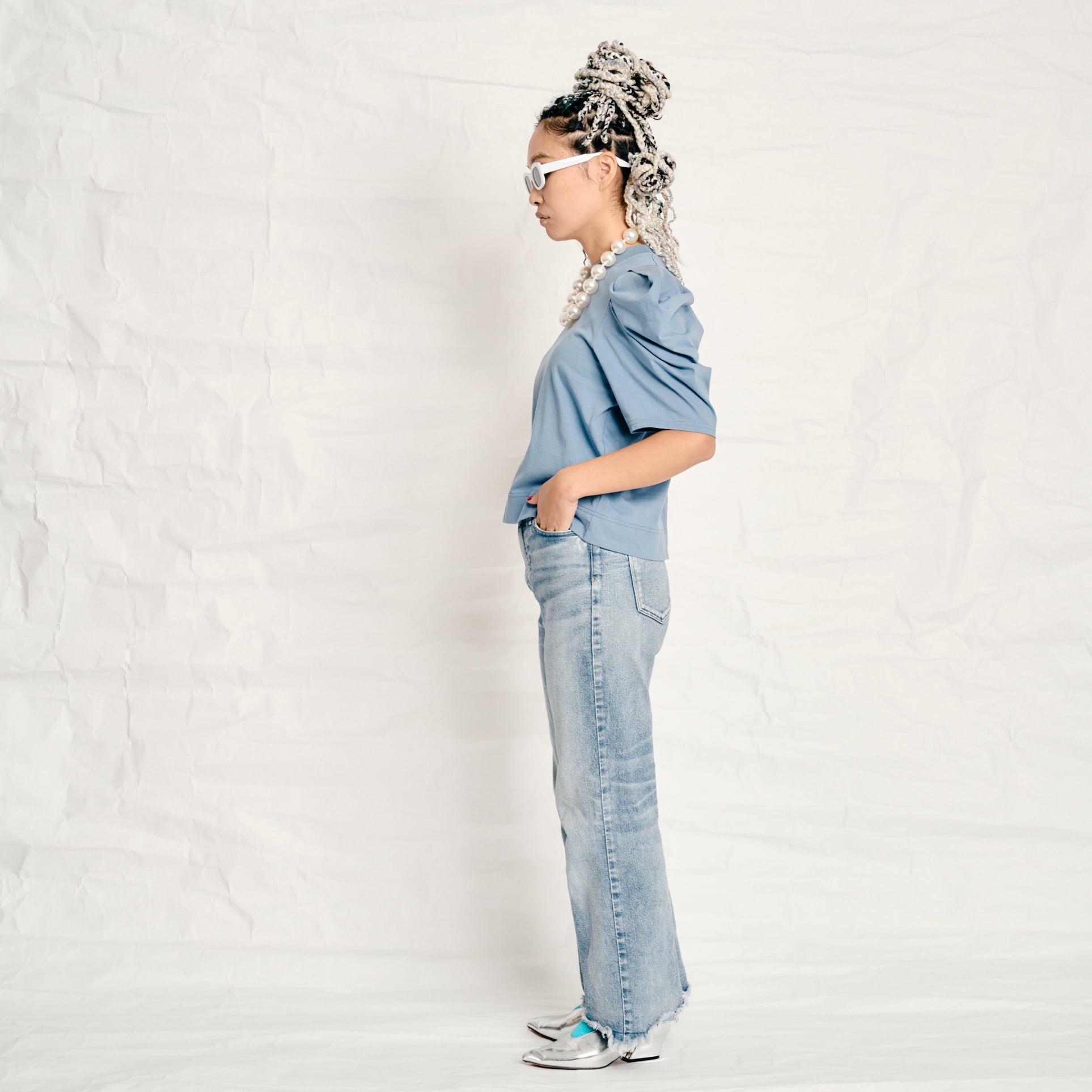 シンプルながらも一癖あるデザインで、普段のスタイリングをアップデートしてくれる主役トップスです。