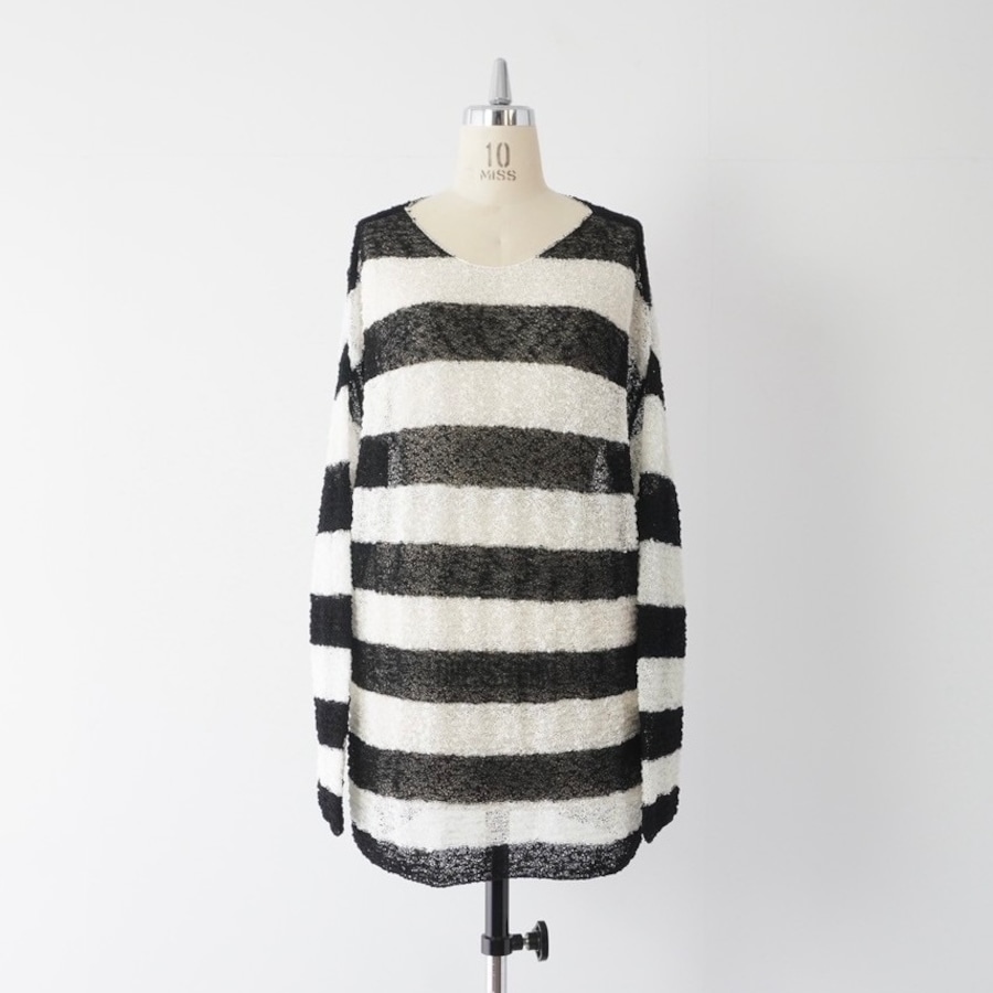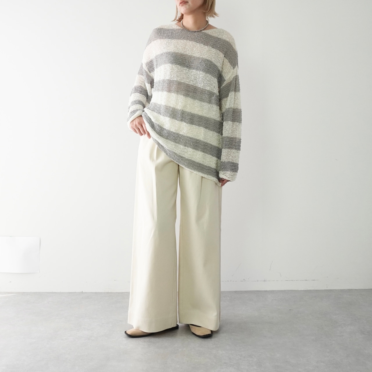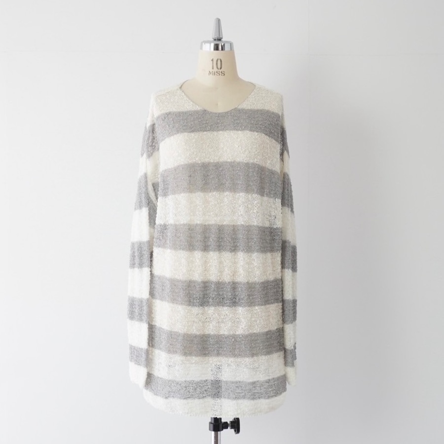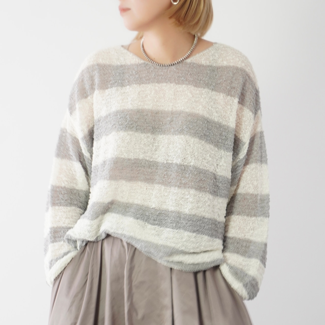 ワイドピッチのボーダーが印象的なニットプルオーバー。