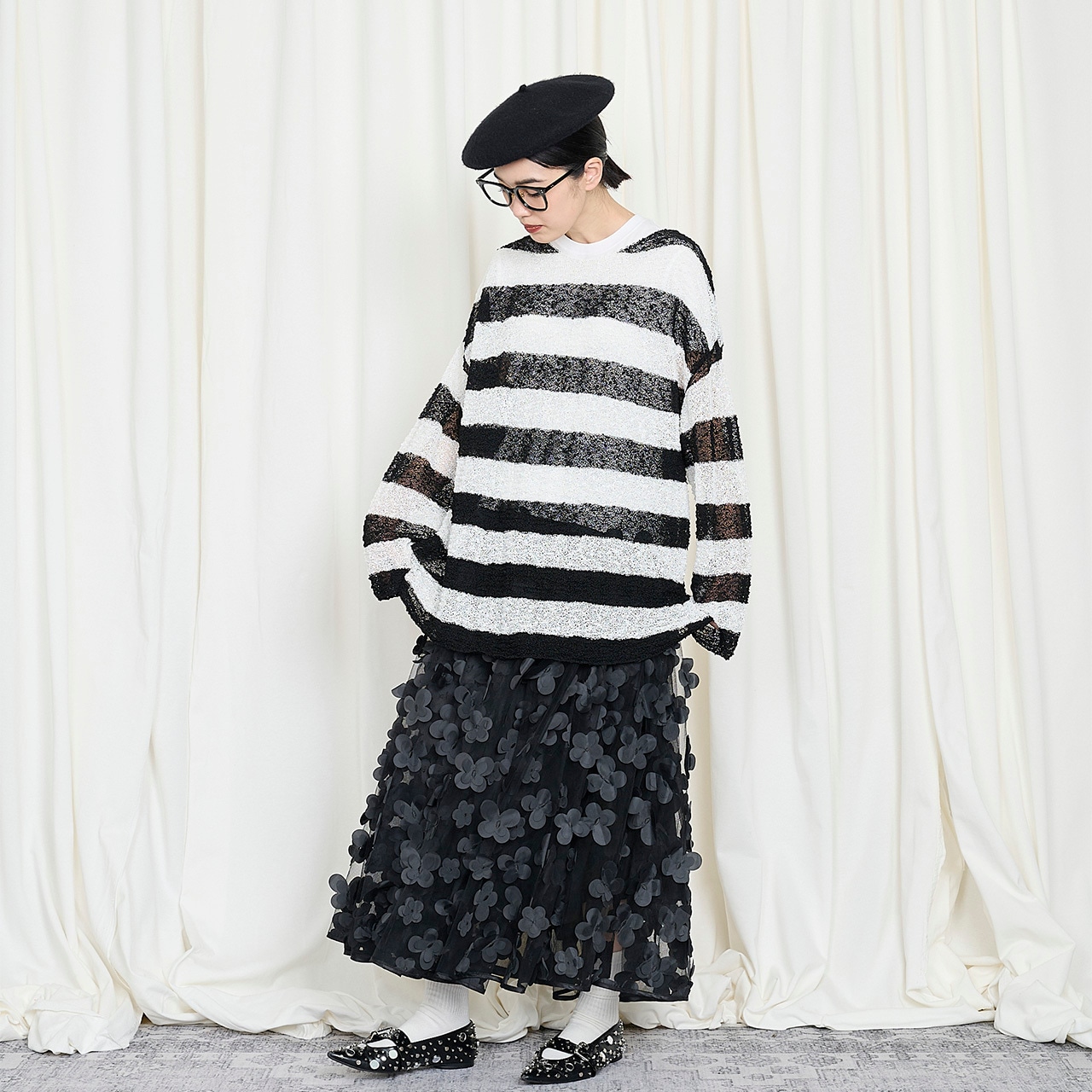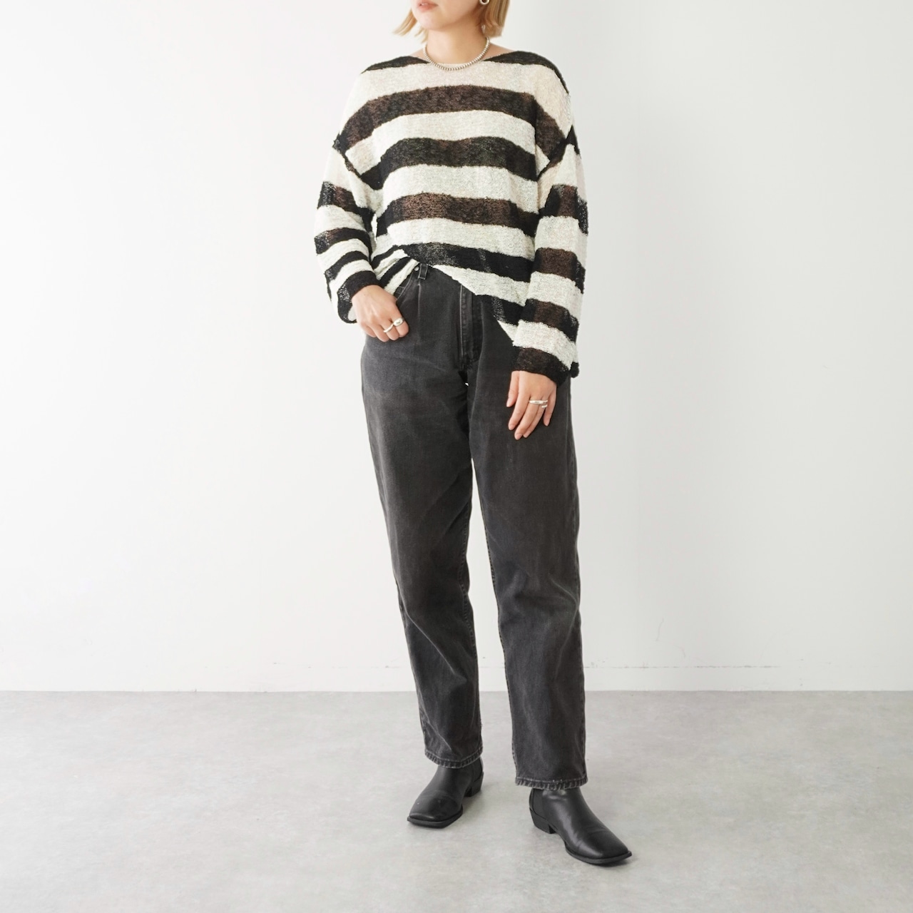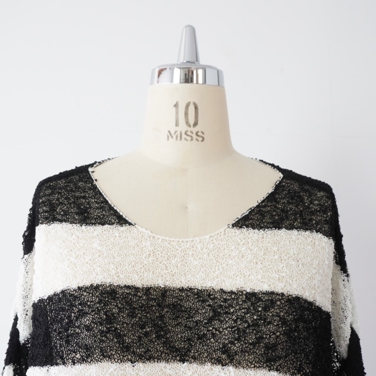 ワイドピッチのボーダーが印象的なニットプルオーバー。