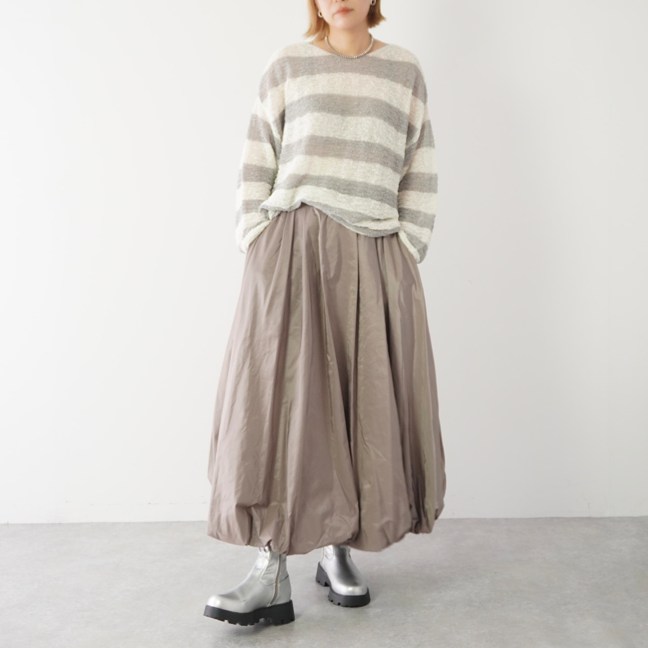 デニムやワイドパンツはもちろん、ロングスカートとのスタイリングもおすすめ。