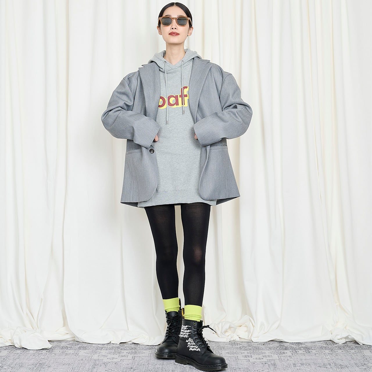 大胆なロゴデザインが目を引く、オーバーサイズのフーディー。