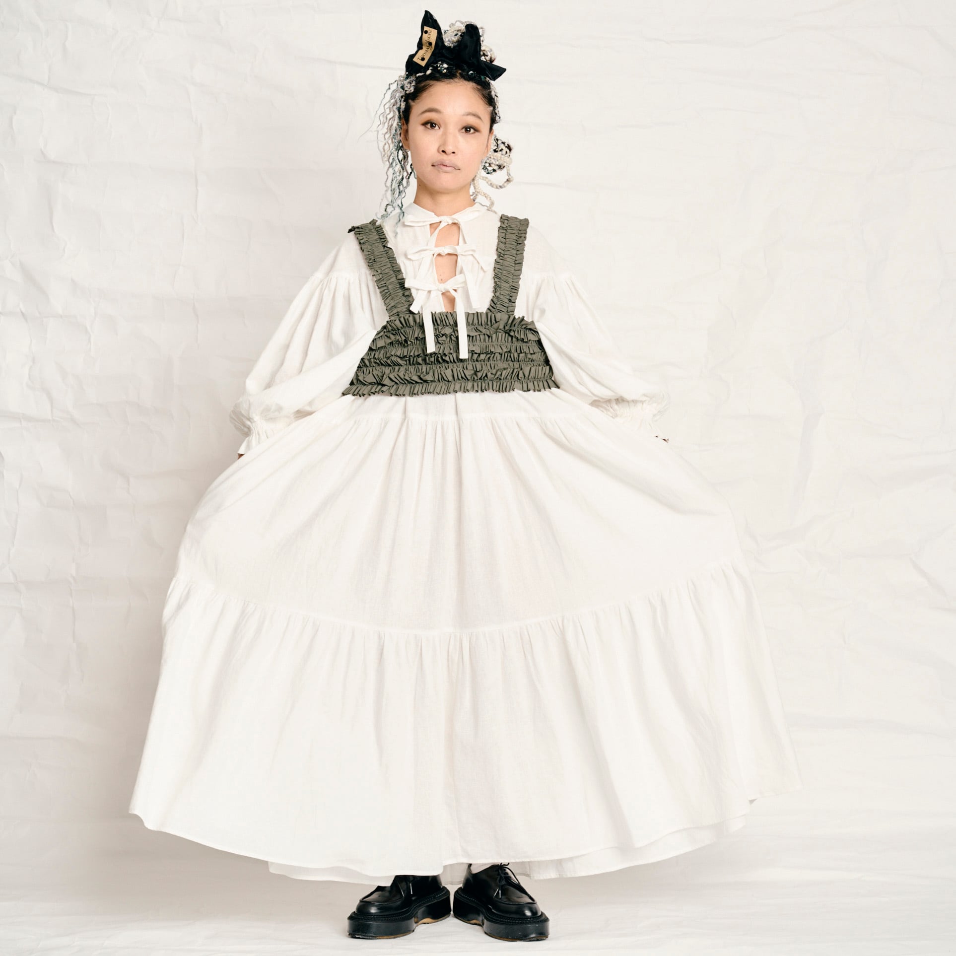 ふんわりと広がるシルエットが魅力のロングワンピース。