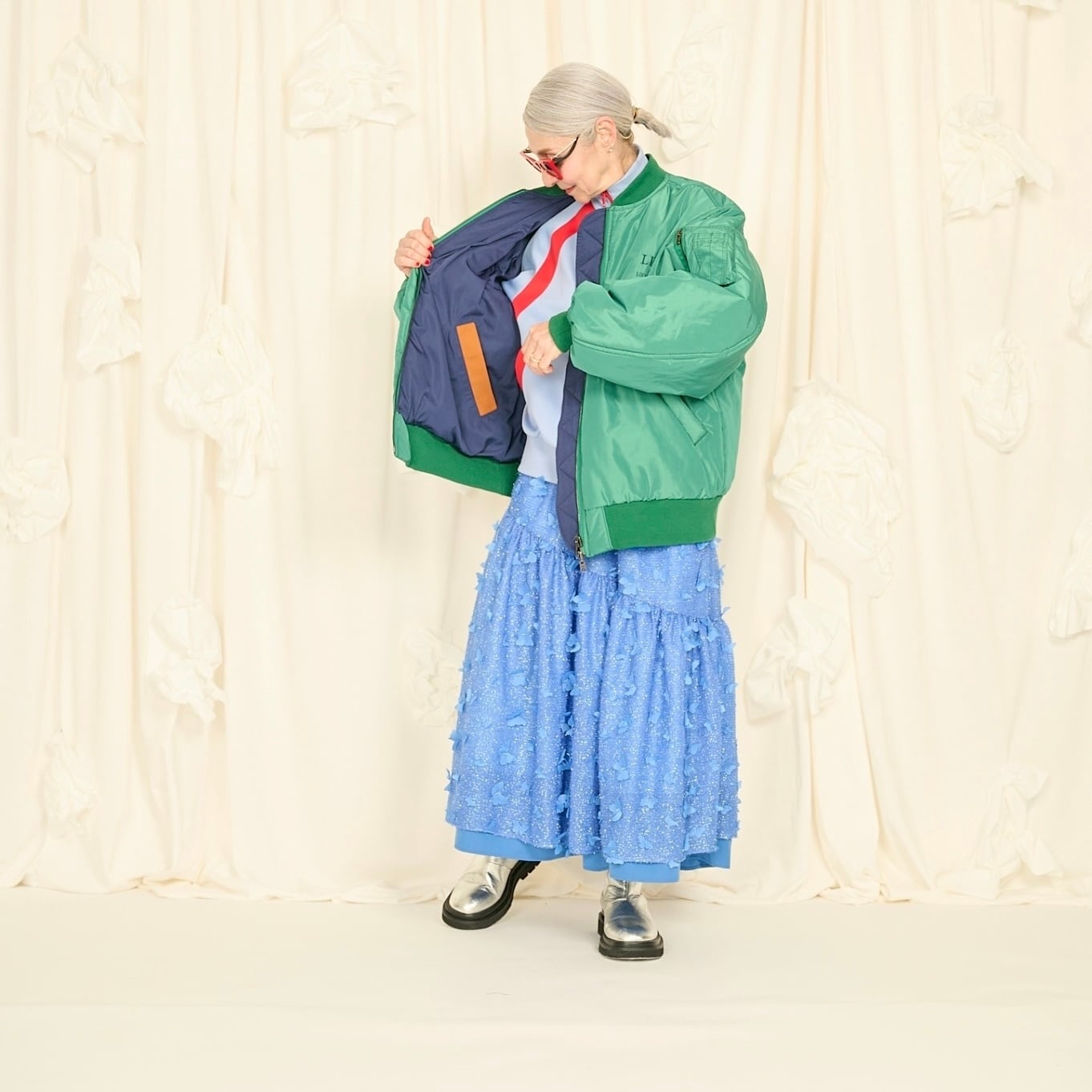 軽くてハリのあるメモリータフタ素材を使用したオーバーサイズMA-1。