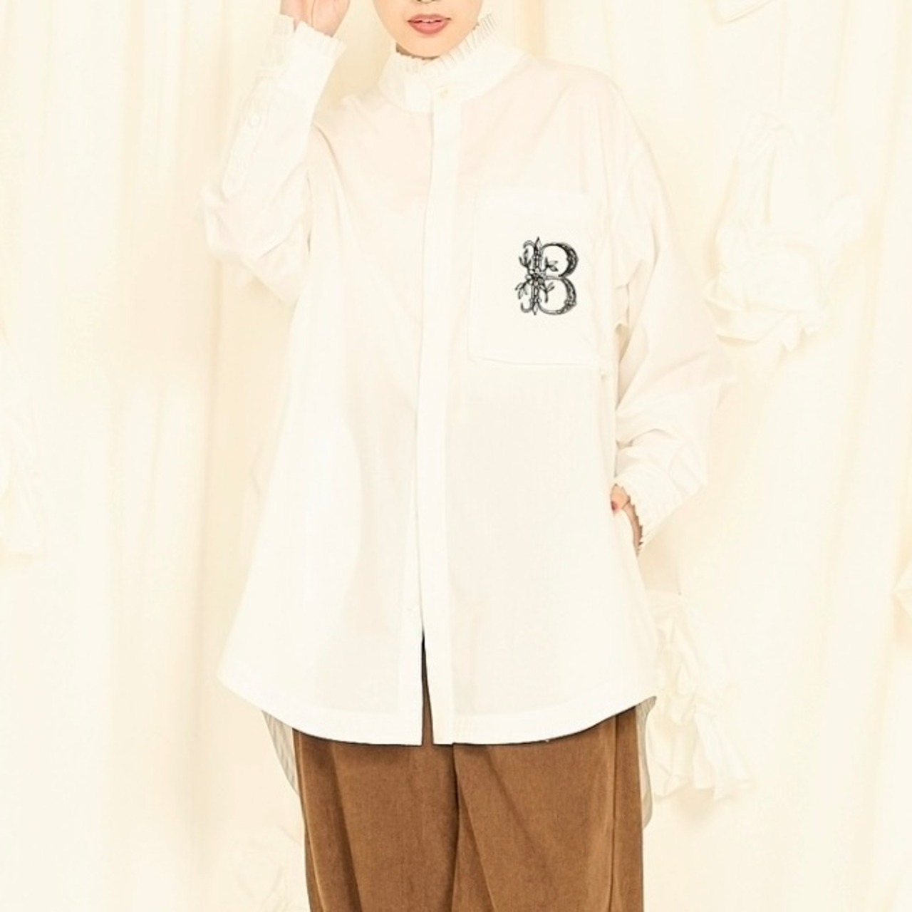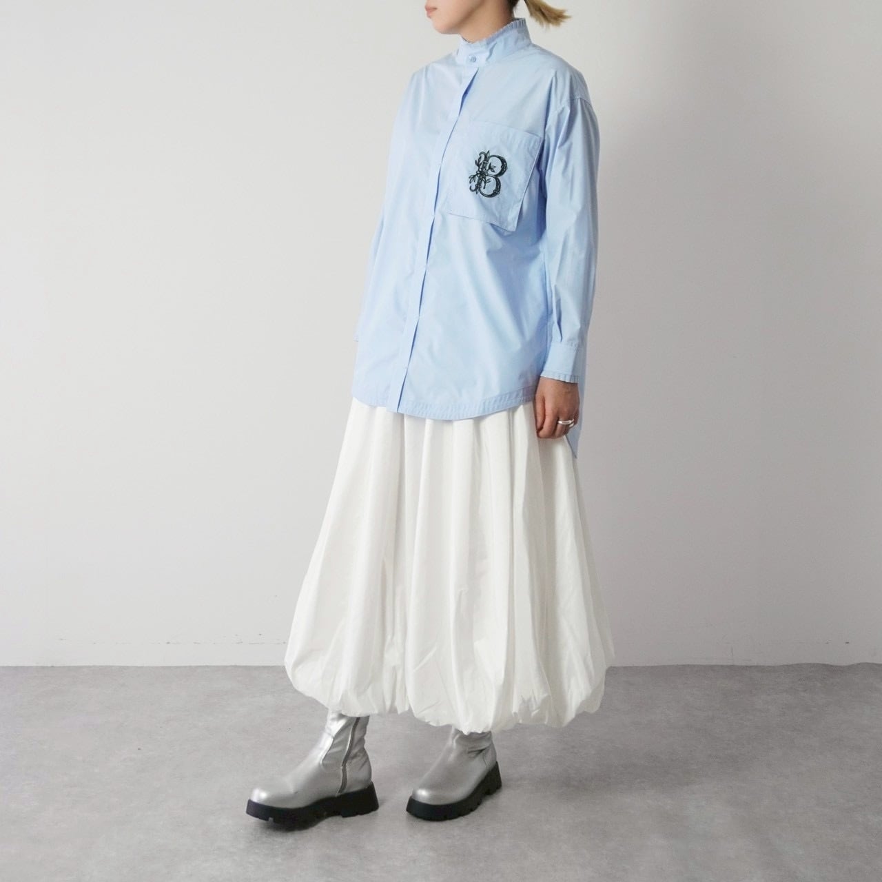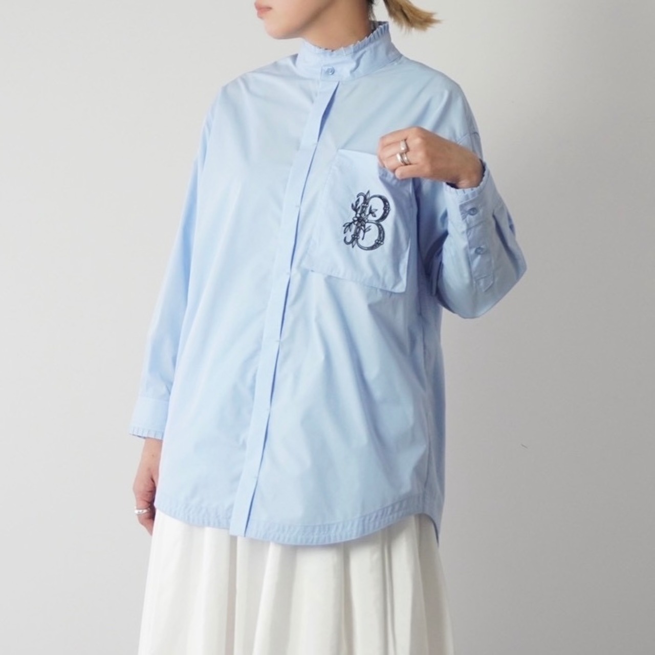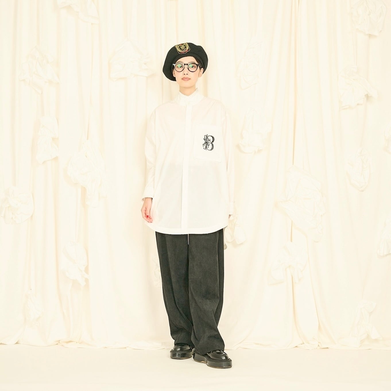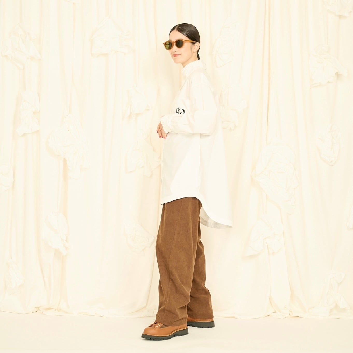 シンプルな中に胸元のロゴ刺繍がアクセントとなり、モードな雰囲気をプラスします。