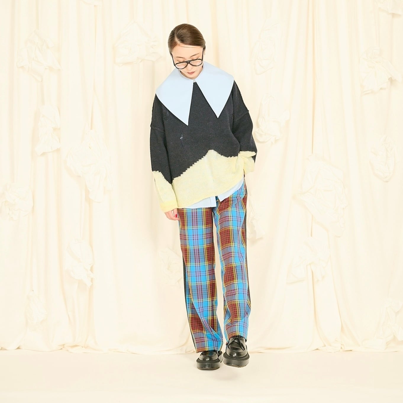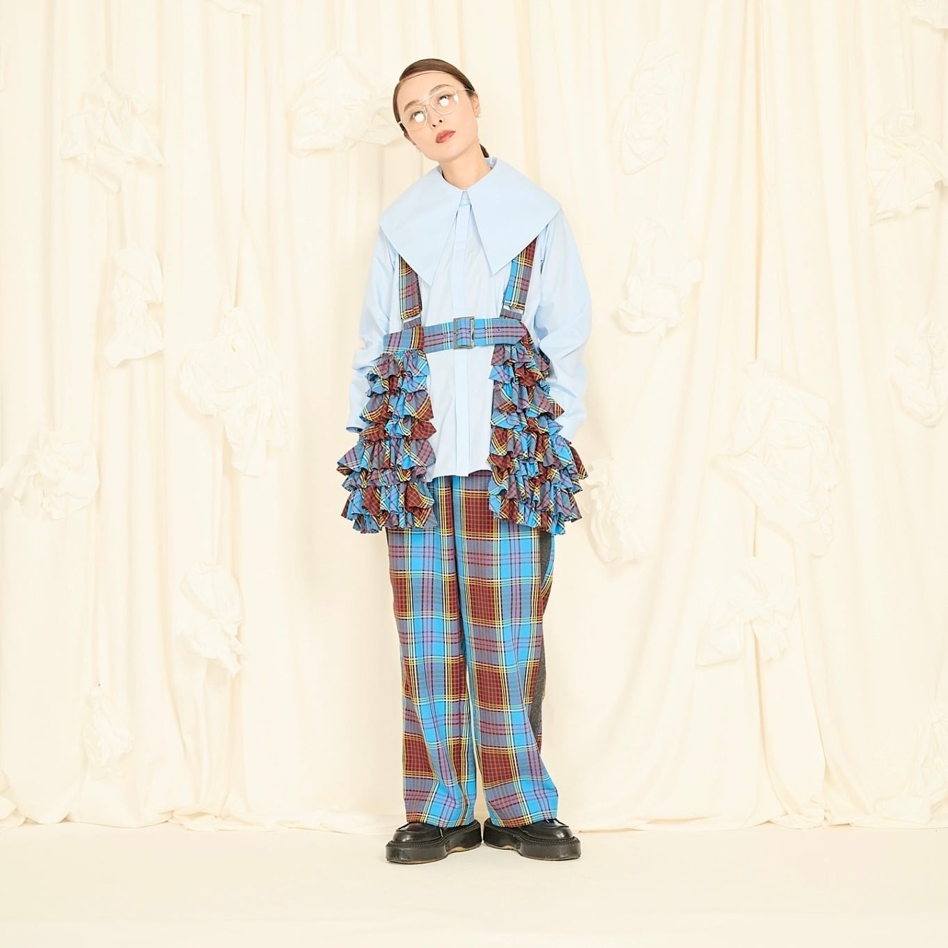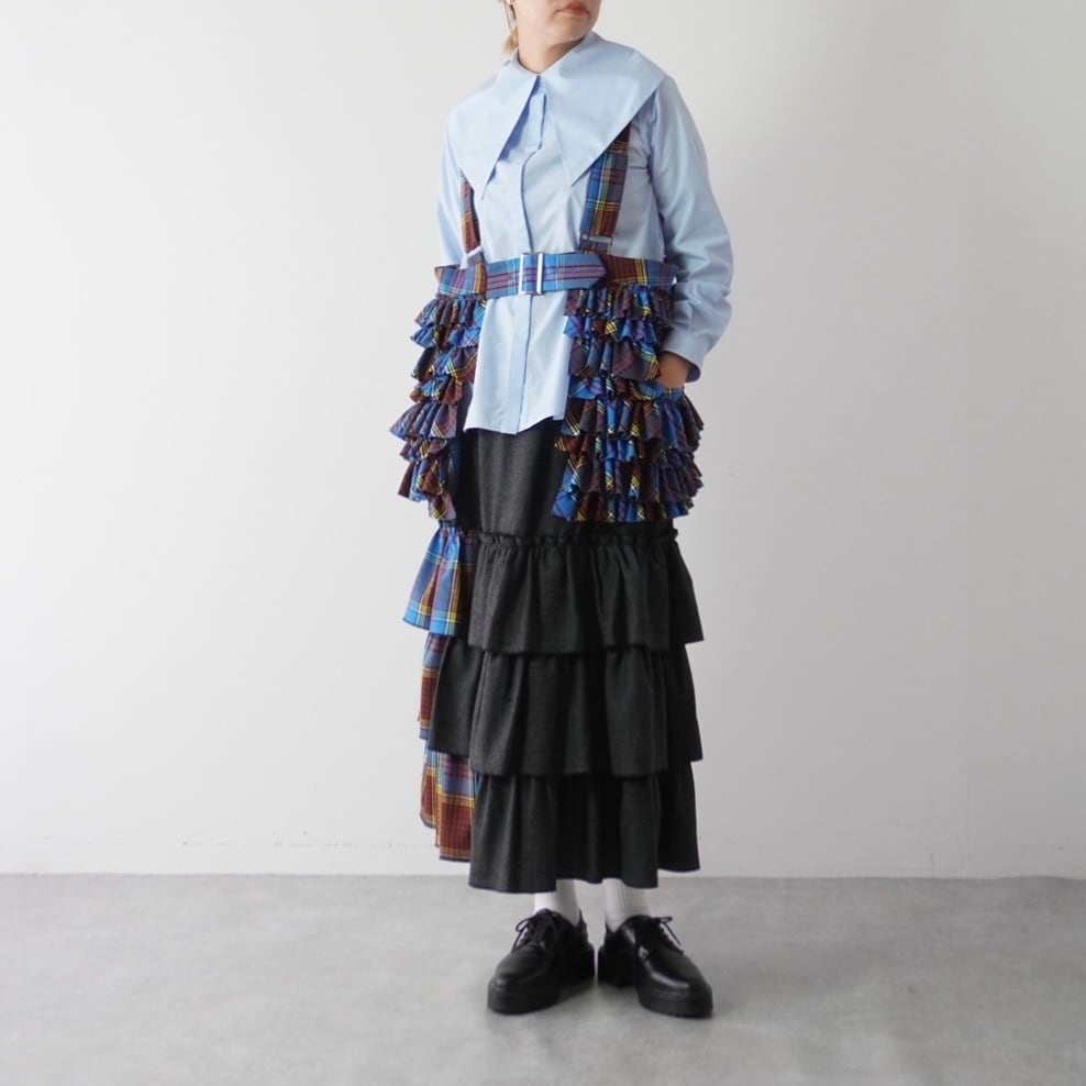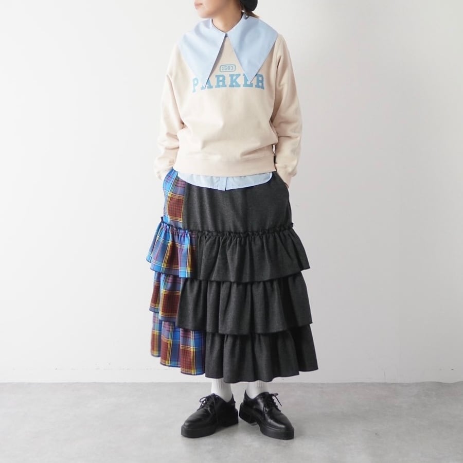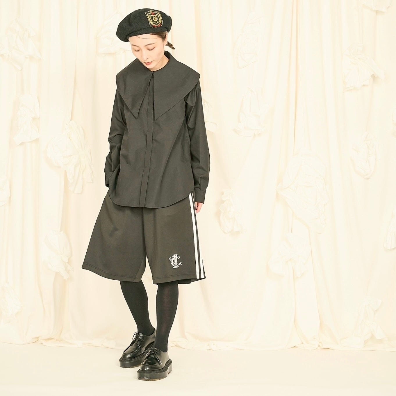 大きめの襟が印象的なビッグカラーシャツ。比翼仕立てでボタンを隠し、ドレス感と上品さを演出しました。肩に収まる襟幅で抵抗なく着られ、シンプルなスタイルに重ねるだけで鮮度をアップ。シワになりにくいコットンポリ素材で、ノーアイロンでも着用可能です。