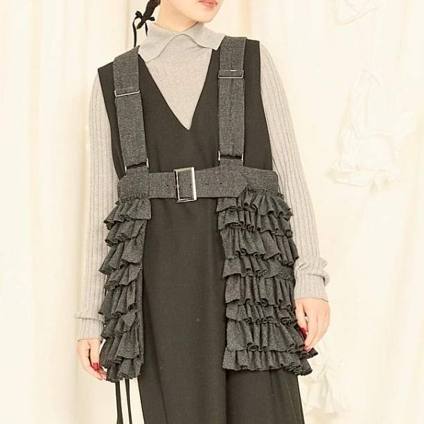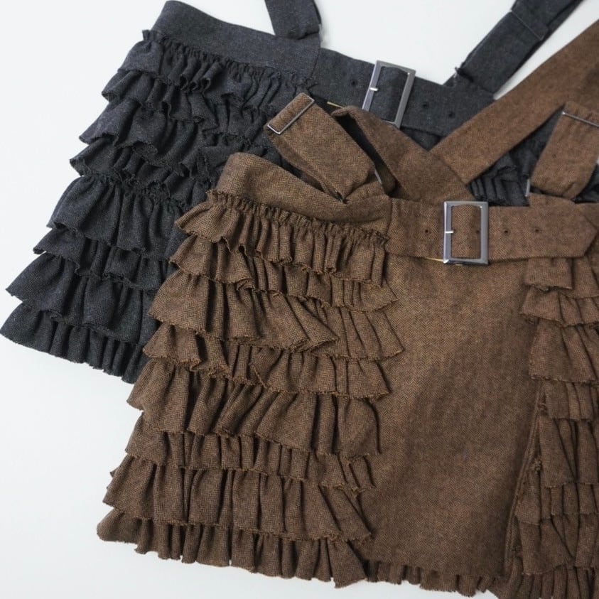 全面に施されたティアードフリルがインパクト抜群で、シンプルなスタイリングにプラスするだけで存在感のあるコーディネートが完成します。