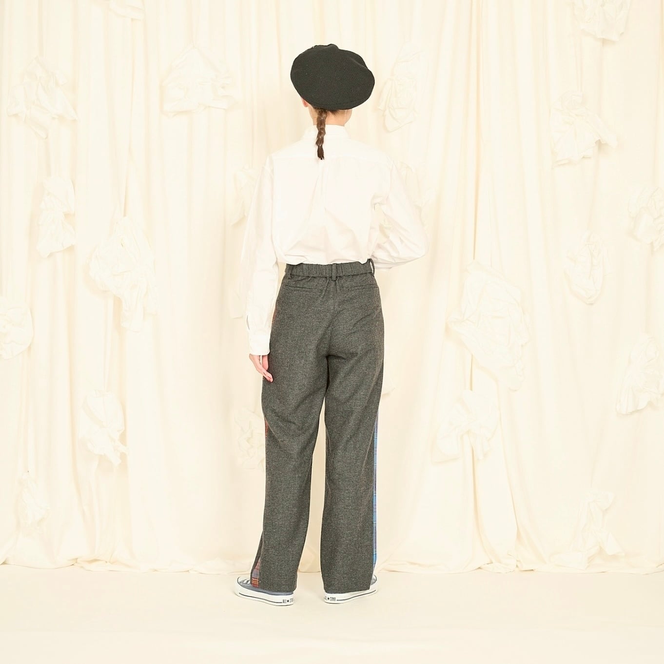 サイドラインのチェックの配色がアクセントになり、トラッド感とストリート感が絶妙に融合した一本です。