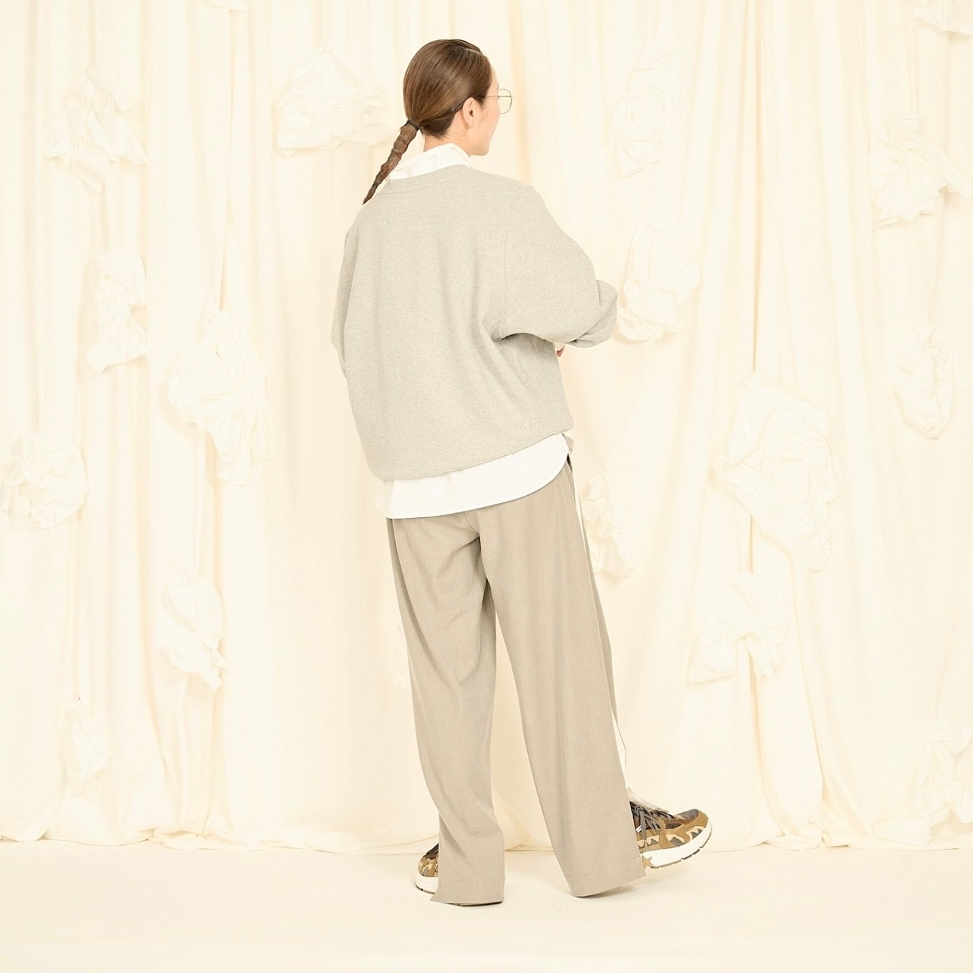 やや短めの着丈で身頃はゆったり、スカートや小柄な方にもバランスよく着られます。裏パイルで軽く着心地も快適。コットン×ポリエステル混紡で見た目はコットン100%の風合い。遊園地をテーマにした遊び心あふれるデザインで、顔映りの良いカラーが魅力です。
