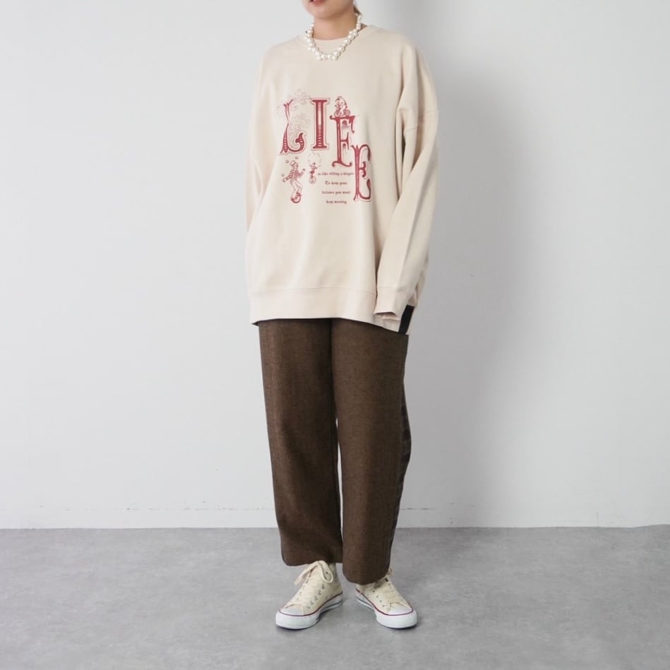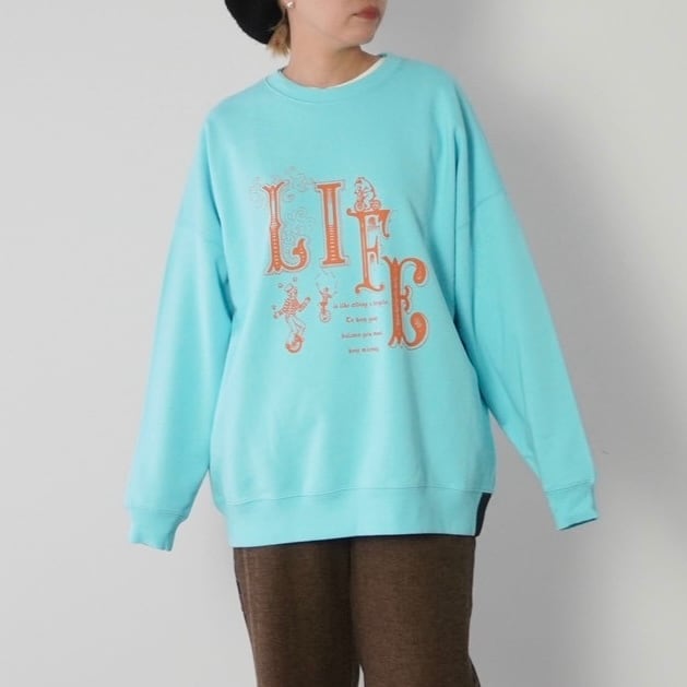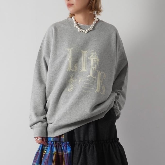 ゆったりとしたオーバーサイズのBIGスウェット。大胆な「LIFE」のメッセージが印象的で、着丈は長めで、さまざまなスタイルに合わせやすく、デニムやスカートとのコーディネートにもぴったり。しっかりとしたオリジナルボディによる高い耐久性で、長くご愛用いただける一着です。