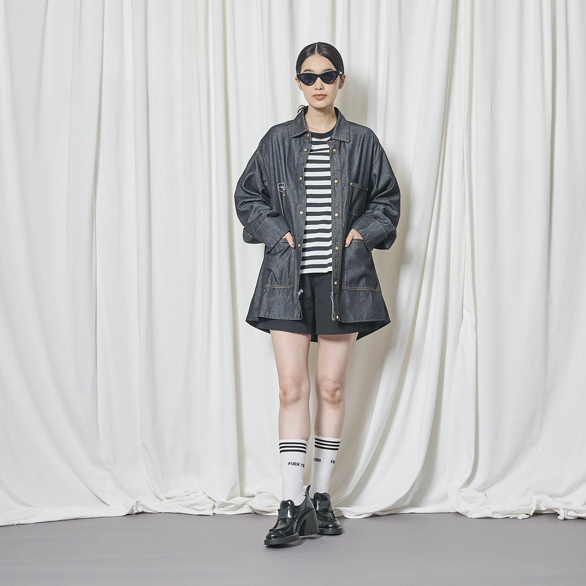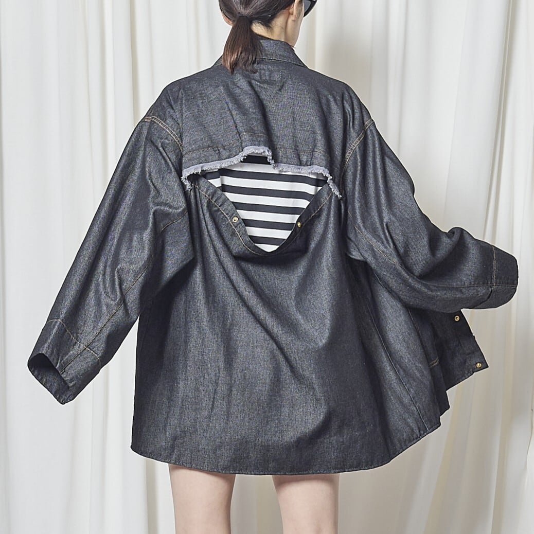 バックがボタンで開閉可能で、インナーをあえて見せたりとコーディネートの幅がひろがります。