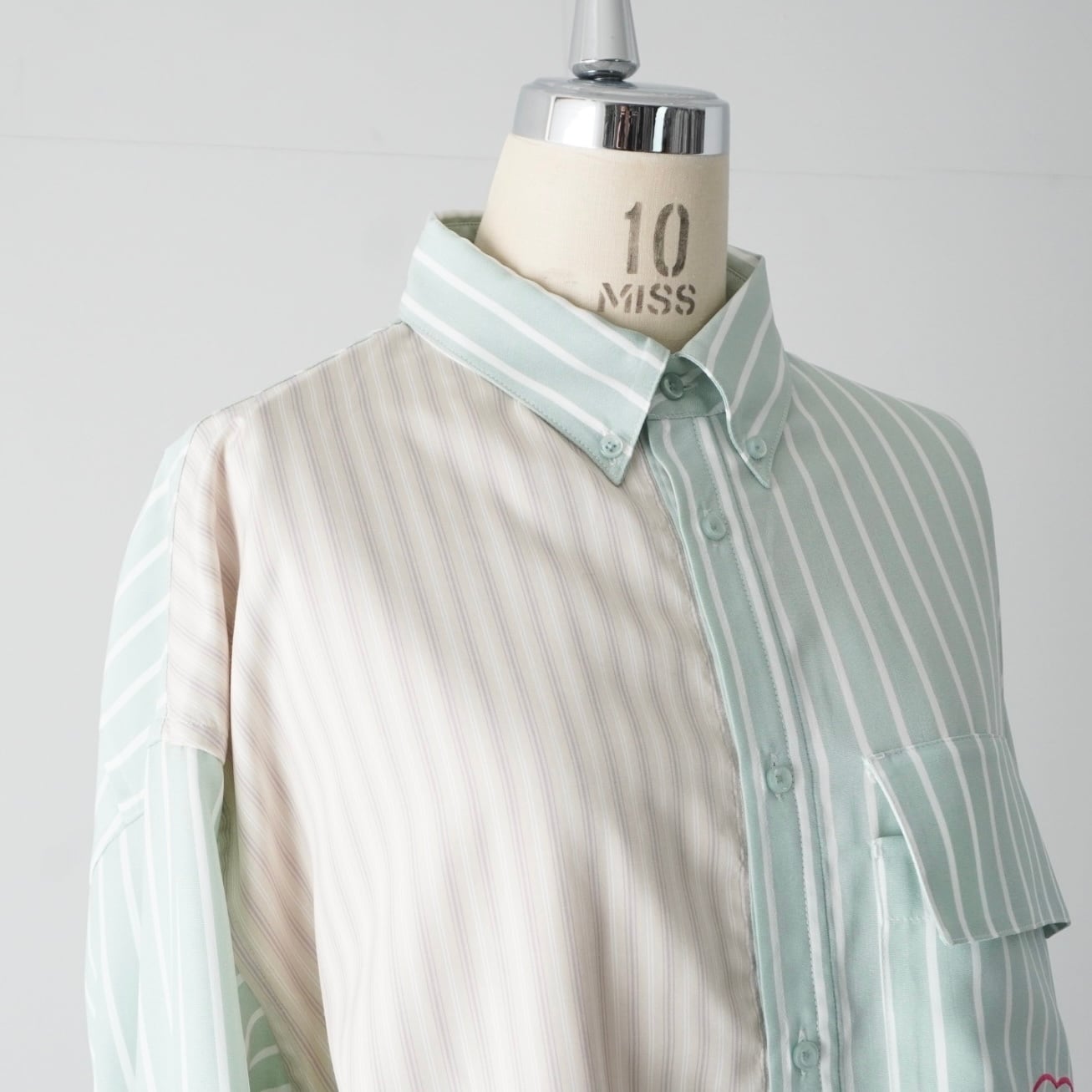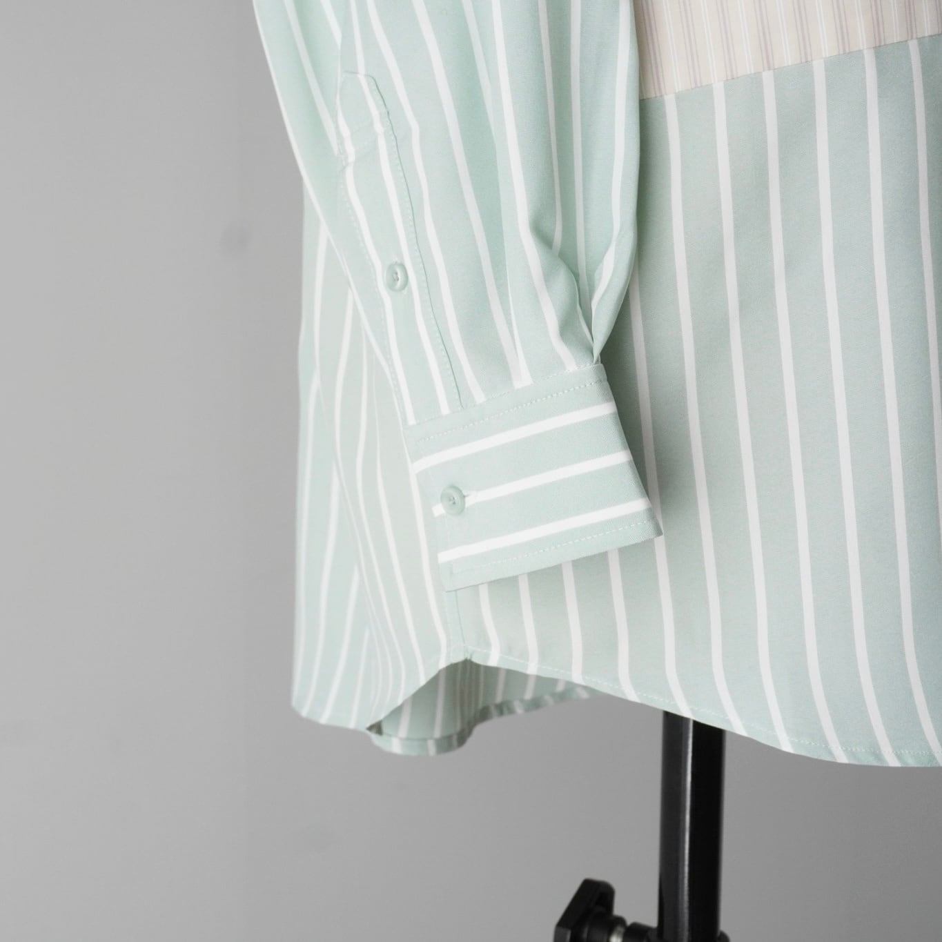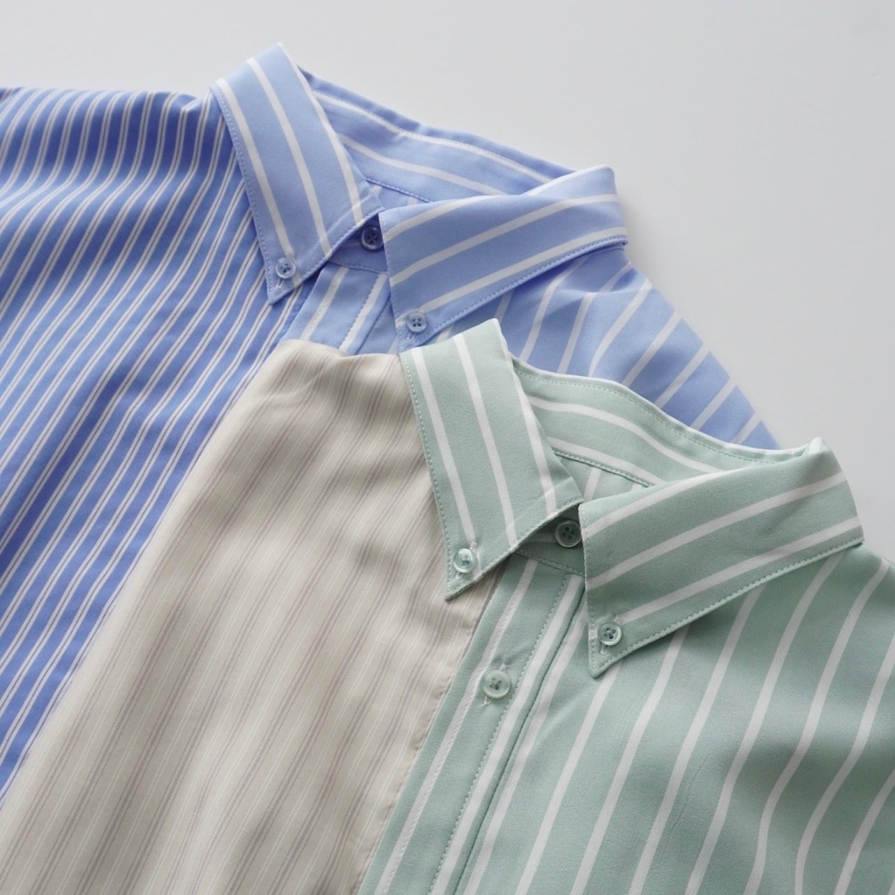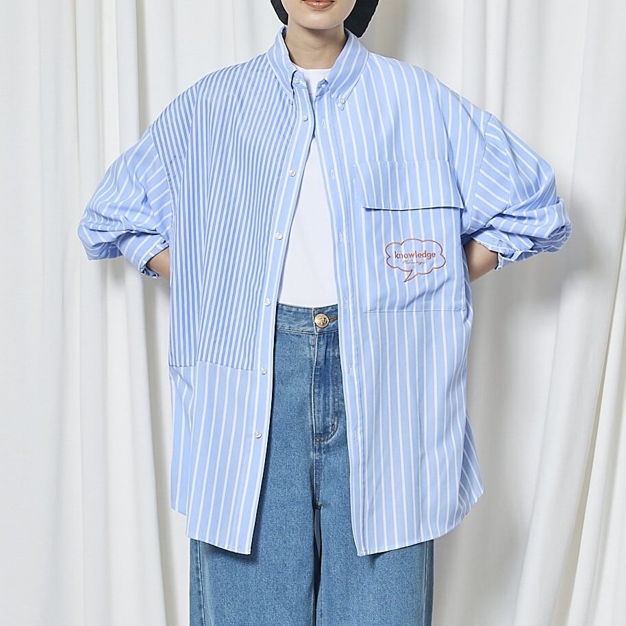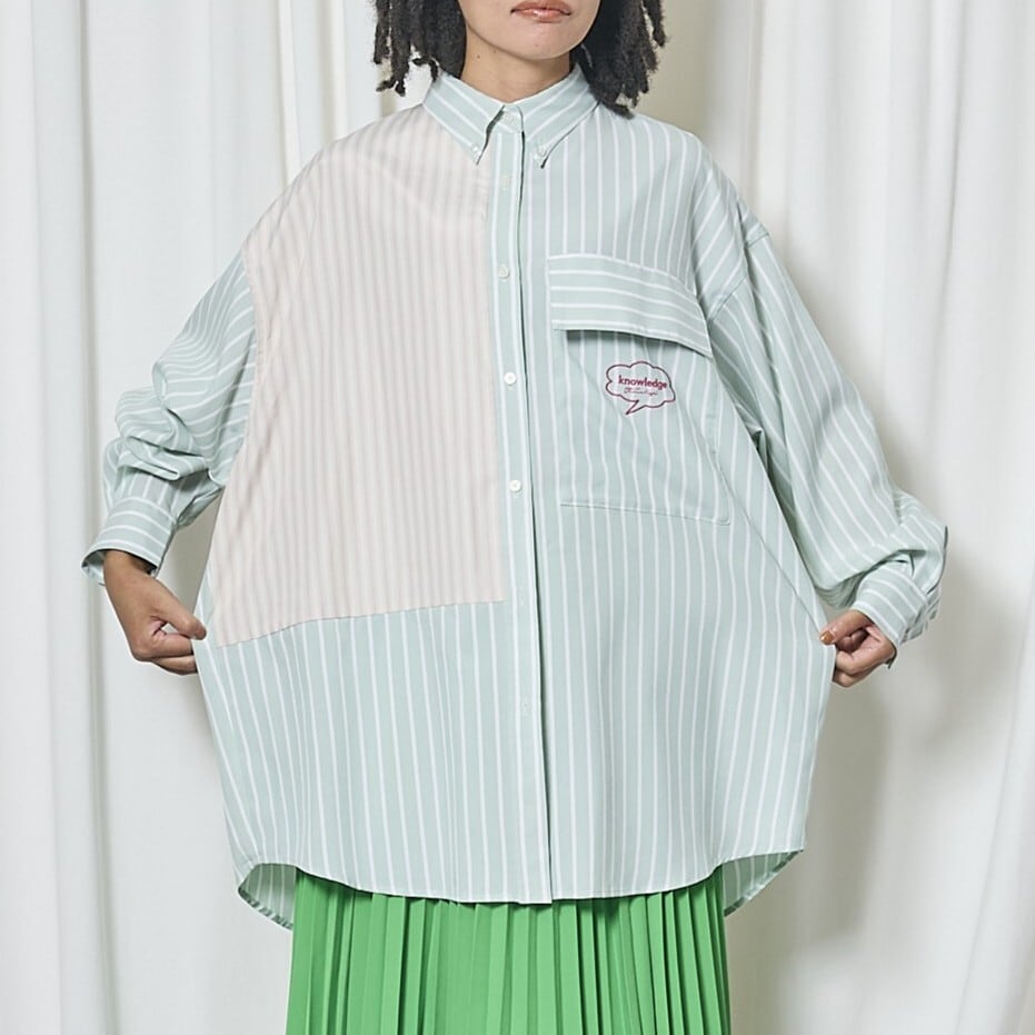 クリーンなストライプ柄に、配色切り替えが映えるデザインシャツ。