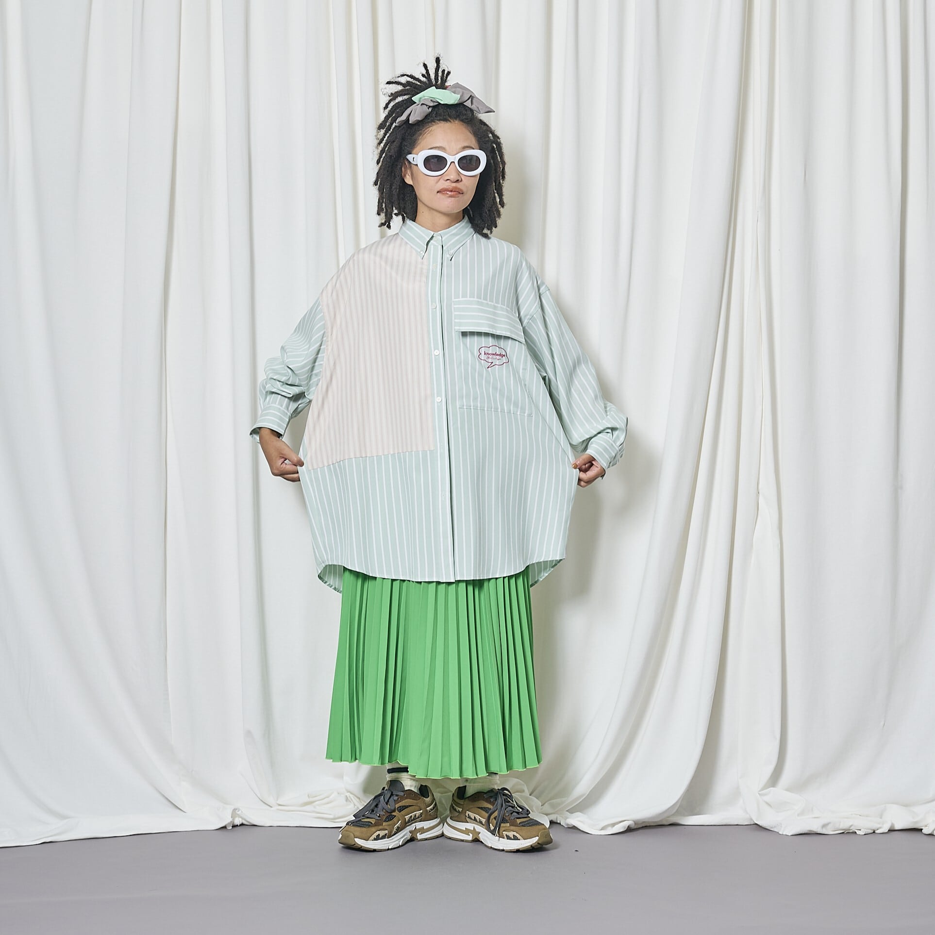 ゆったりとしたオーバーシルエットで体のラインを拾わず、1枚でも羽織りとしても活躍します。