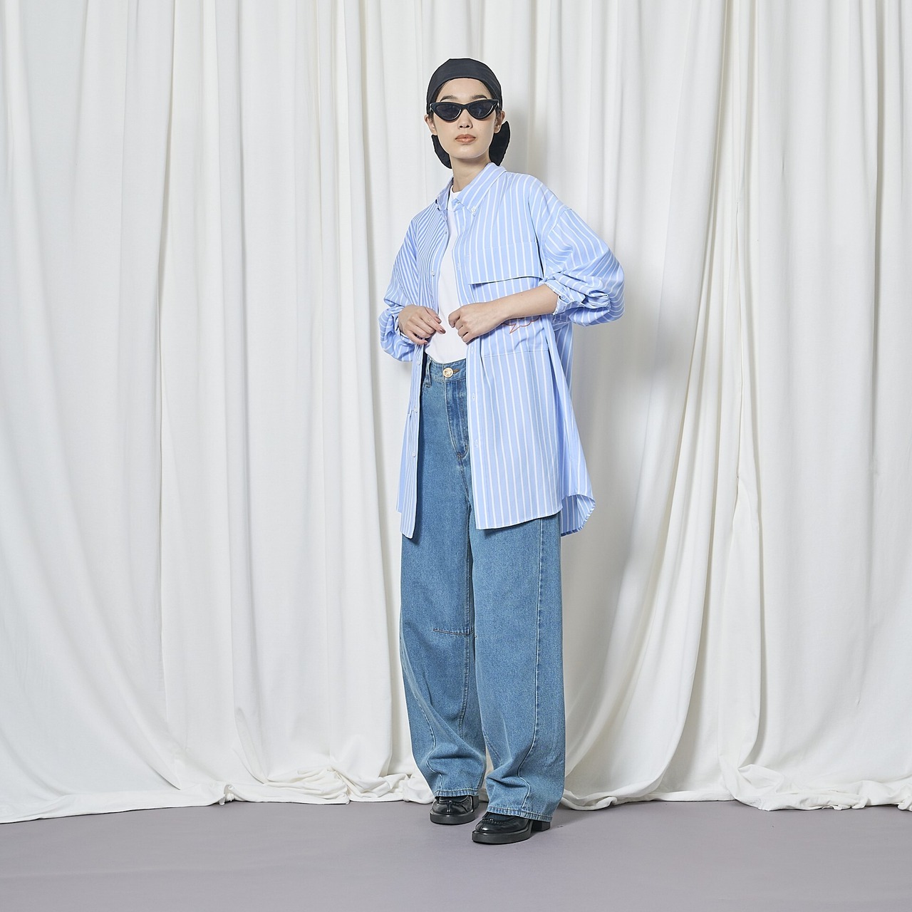 パンツにもスカートにも合わせやすく、シーズンレスで着回せるアイテムです。
