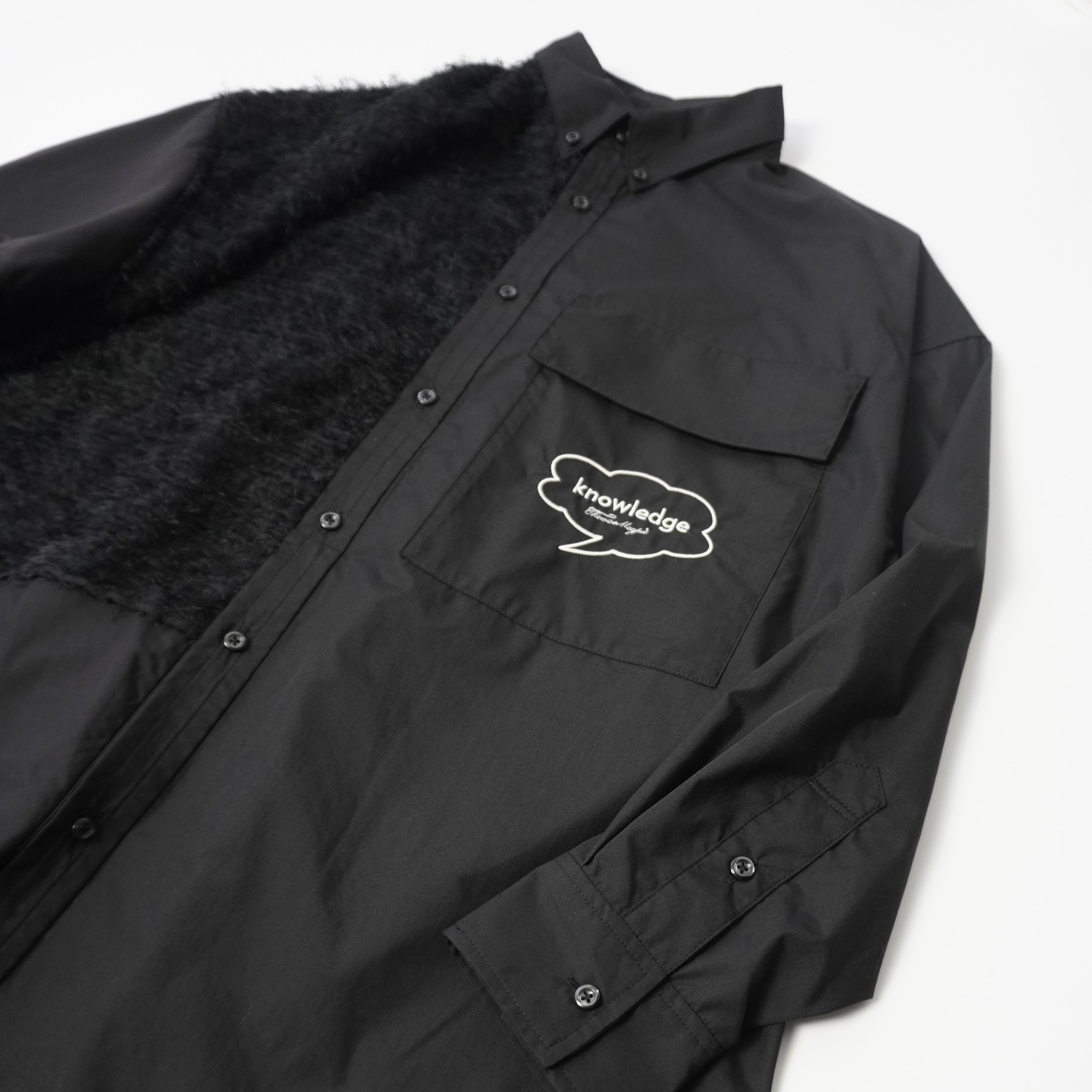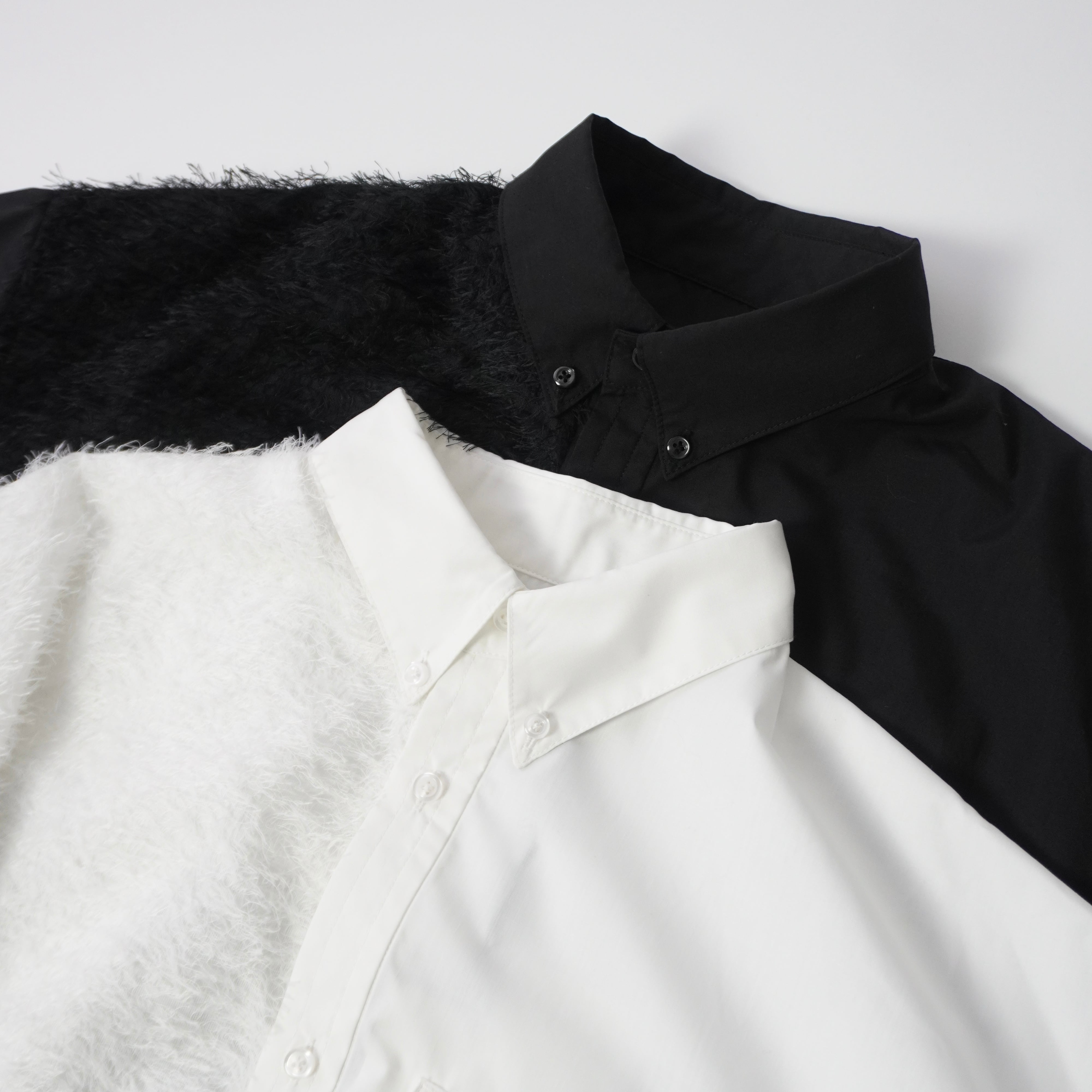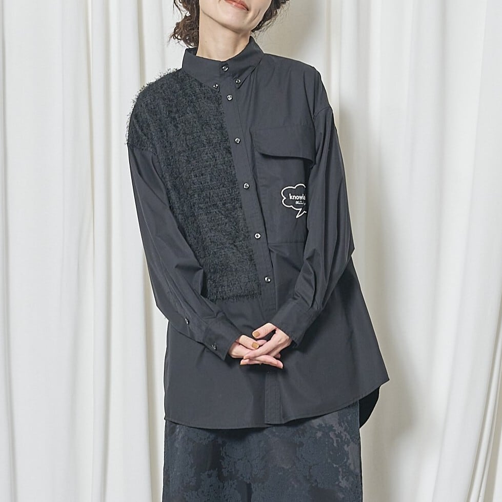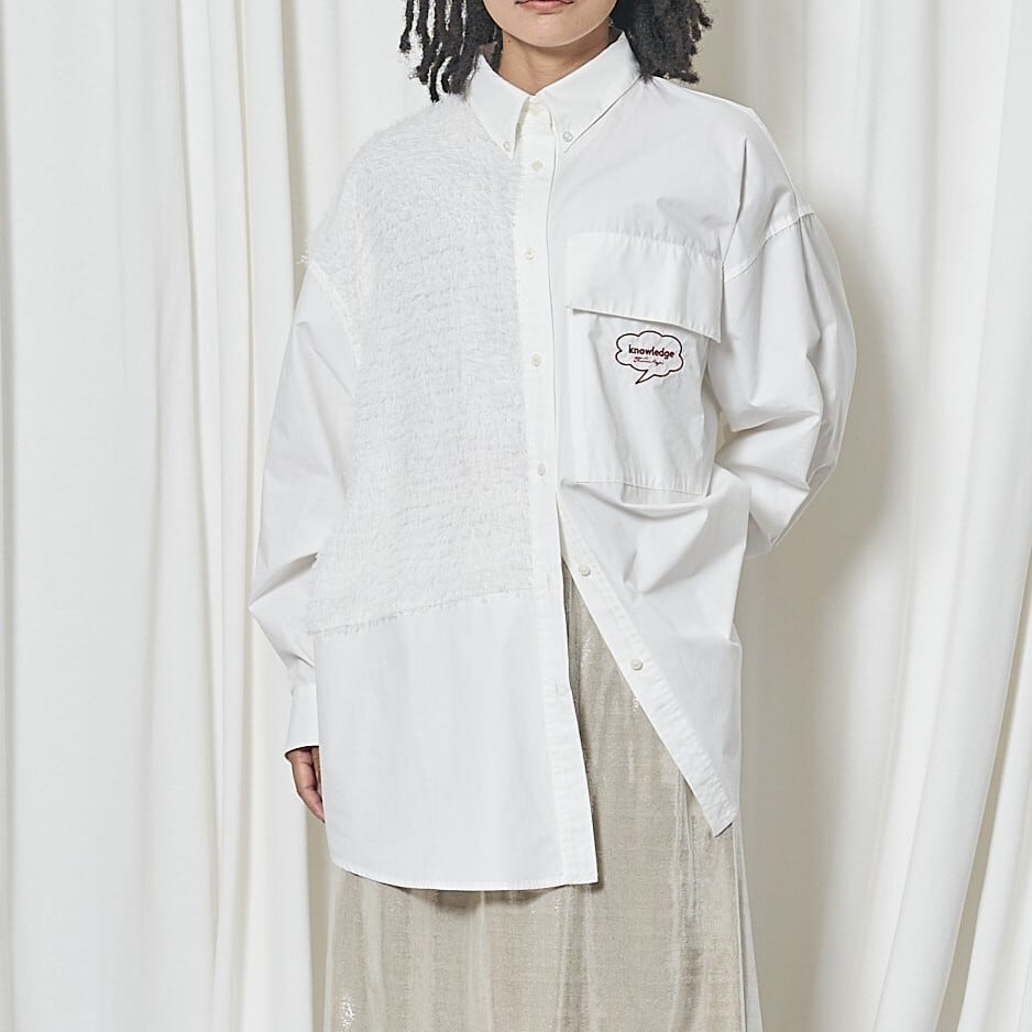 異素材使いがアクセントになったデザインシャツ。