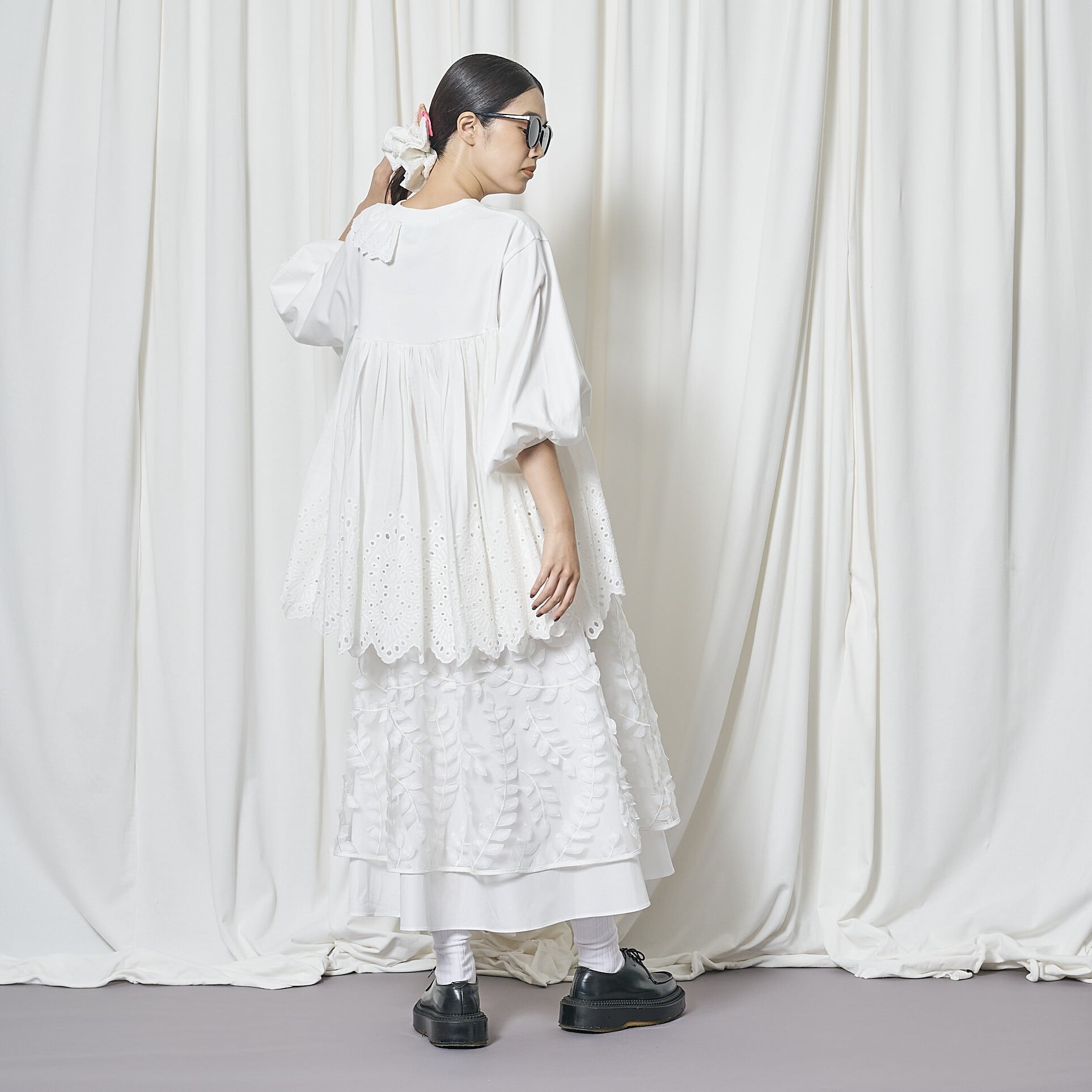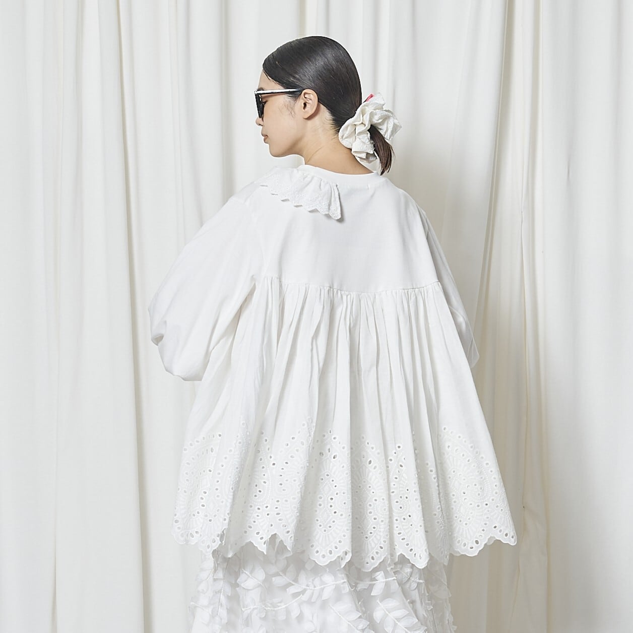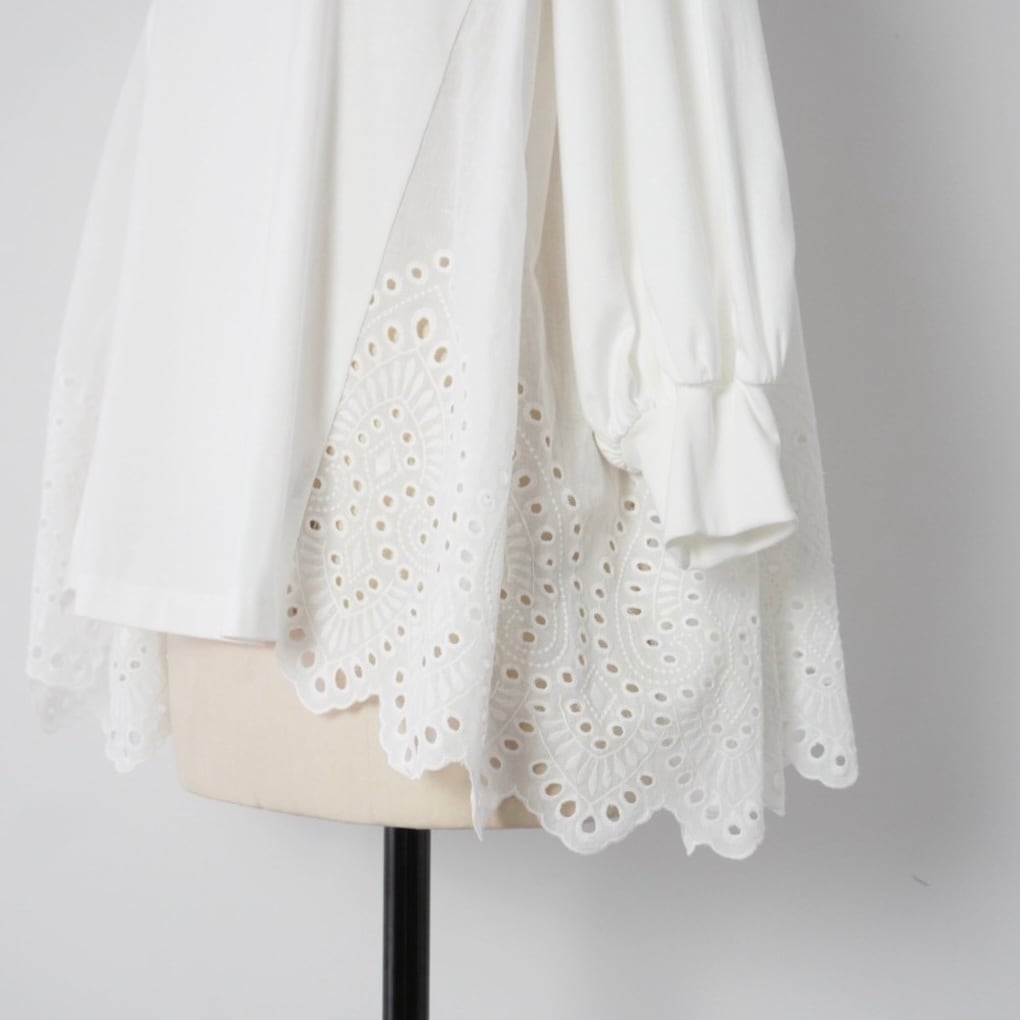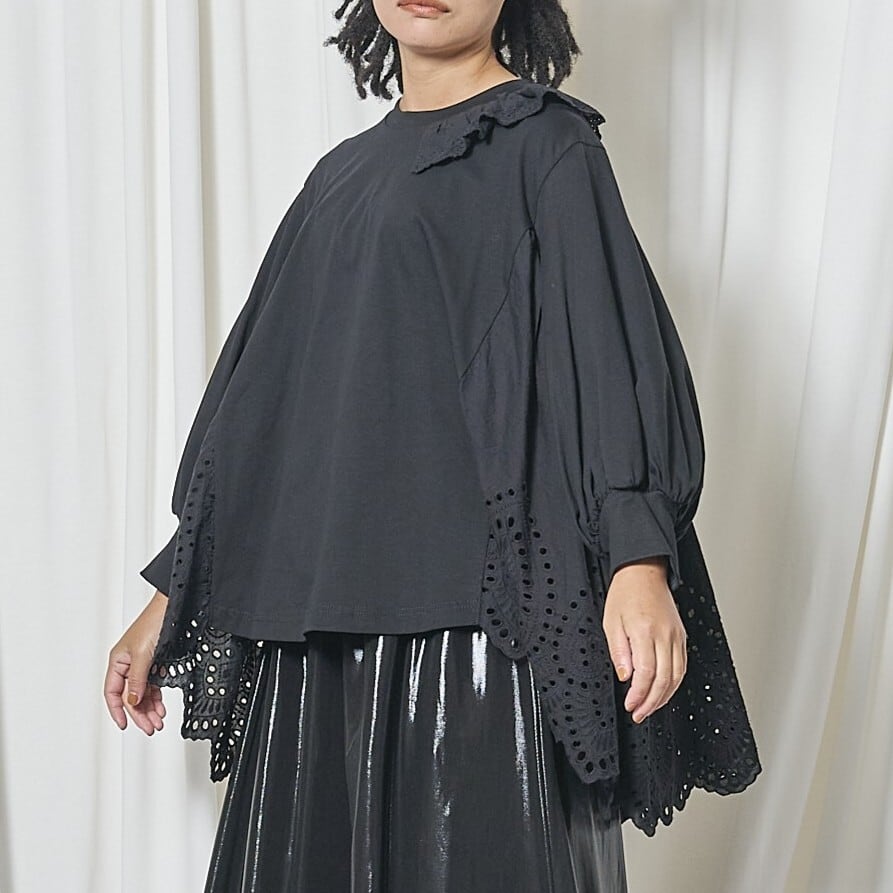 背中一面に施された繊細なレースが、動くたびに表情を生み、カジュアルなTシャツを上品な印象へと昇華します。