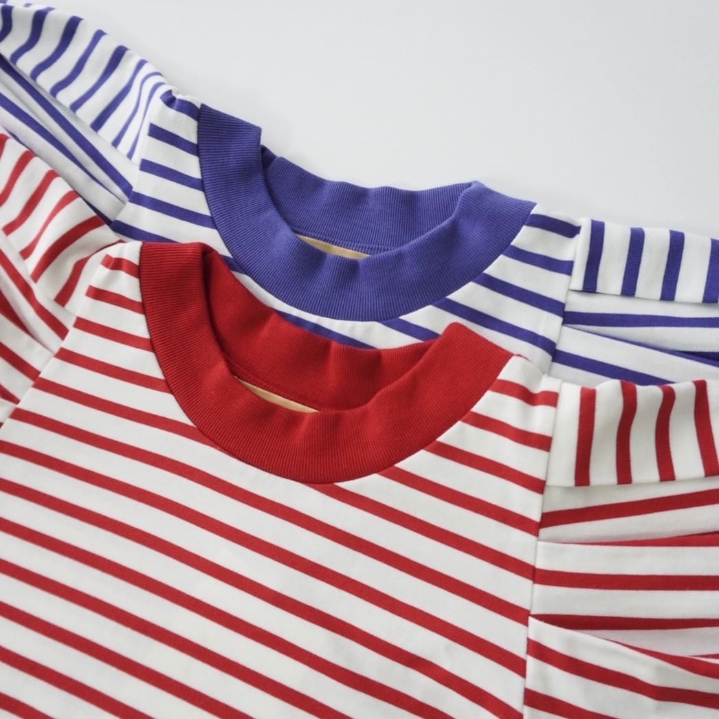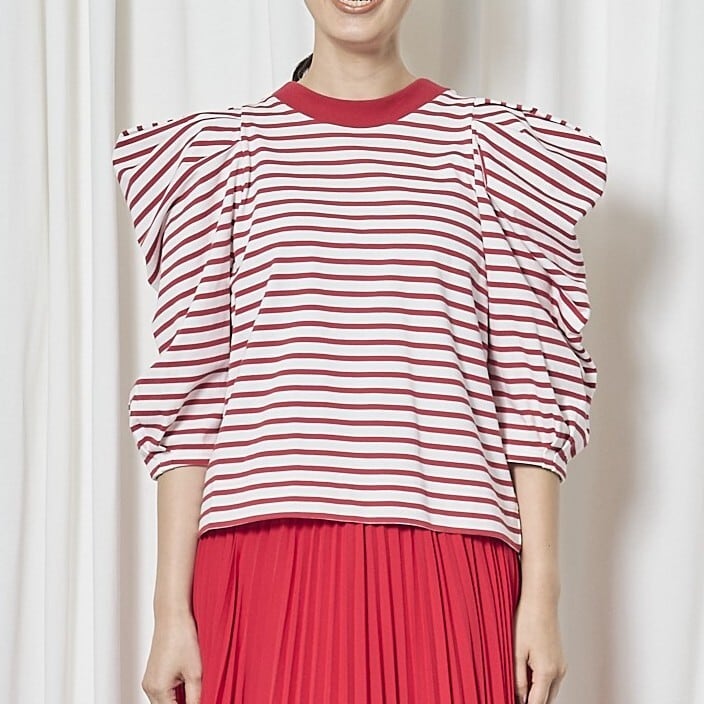 カジュアルなボーダー柄に、Thomas Magpieらしいパフスリーブを掛け合わせたデザイントップス。
