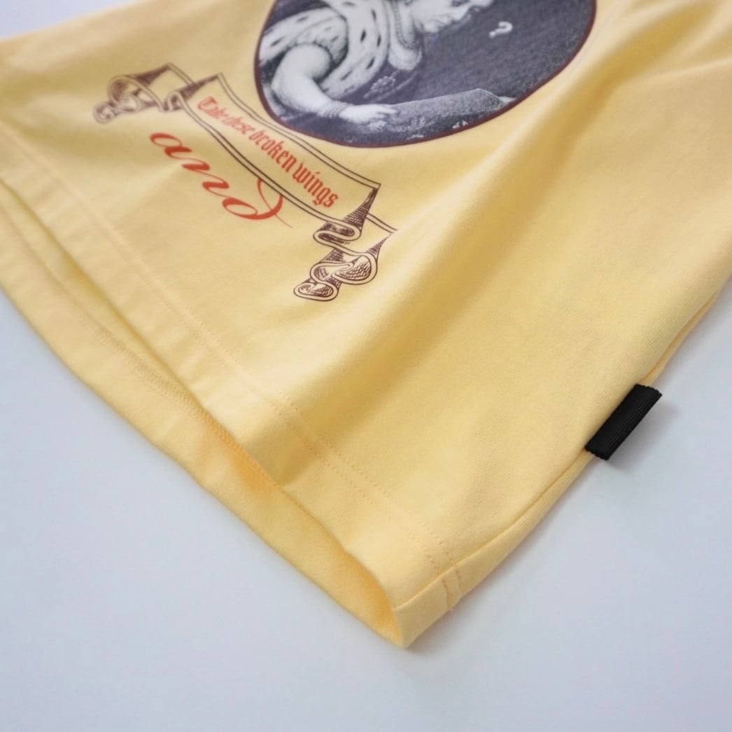 19世紀に英国の発展を支えたヴィクトリア女王のグラフィックをプリント。学びと努力を重ねた人物像に重ね、ビートルズ「Blackbird」から “LEARN TO FLY” の歌詞をロゴとして使用。
