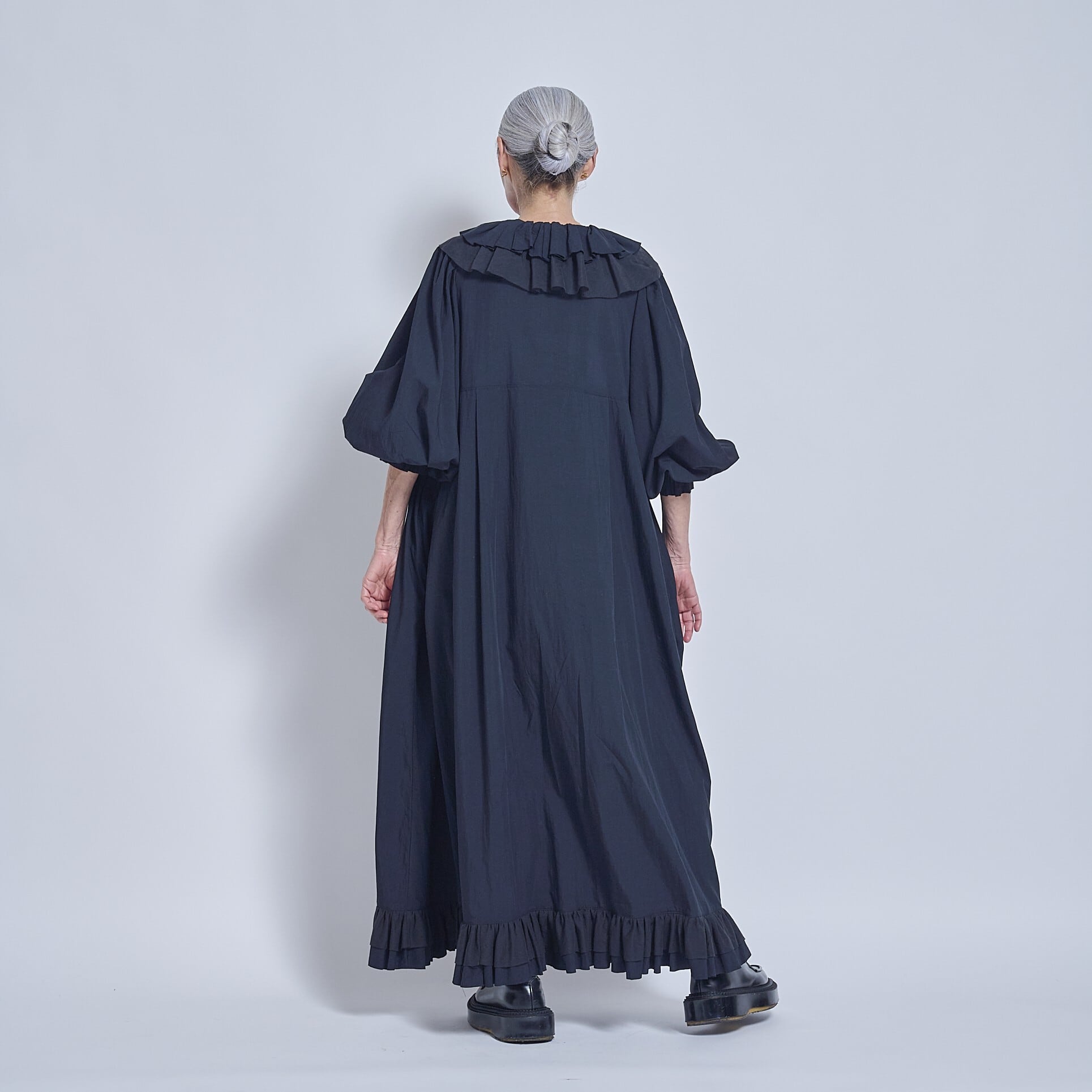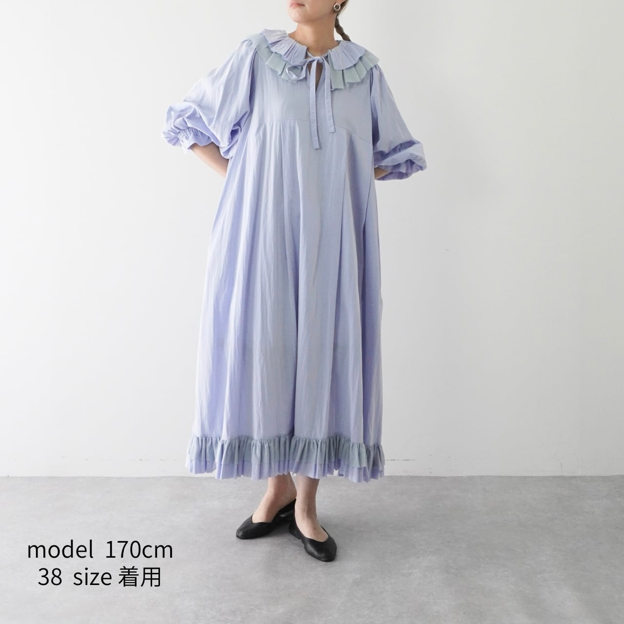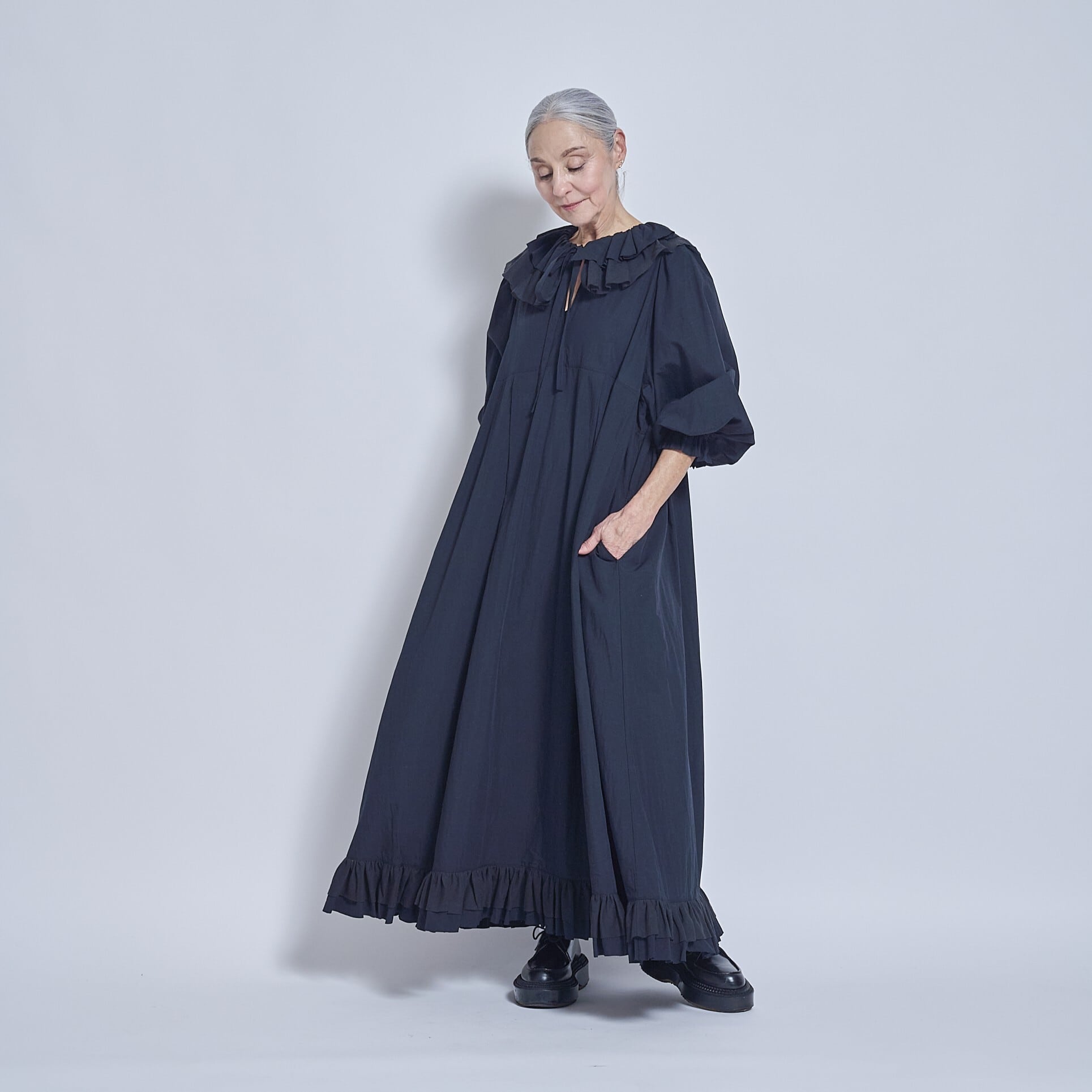 レーヨン混の落ち感ある素材を使用した、上品なフリルワンピース。