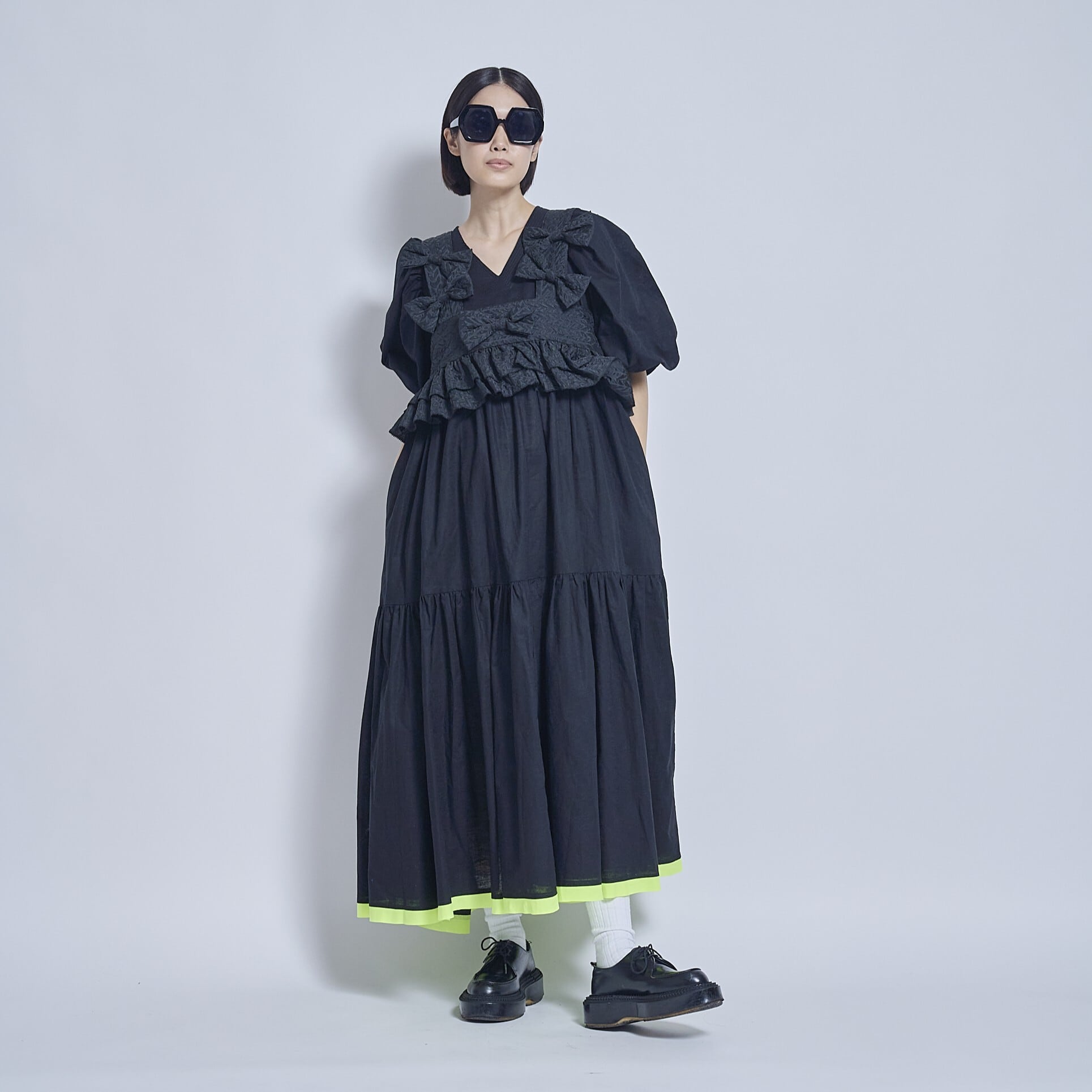 甘さのあるディテールながら、ブラックカラーで引き締めることでモードな印象に仕上げています。