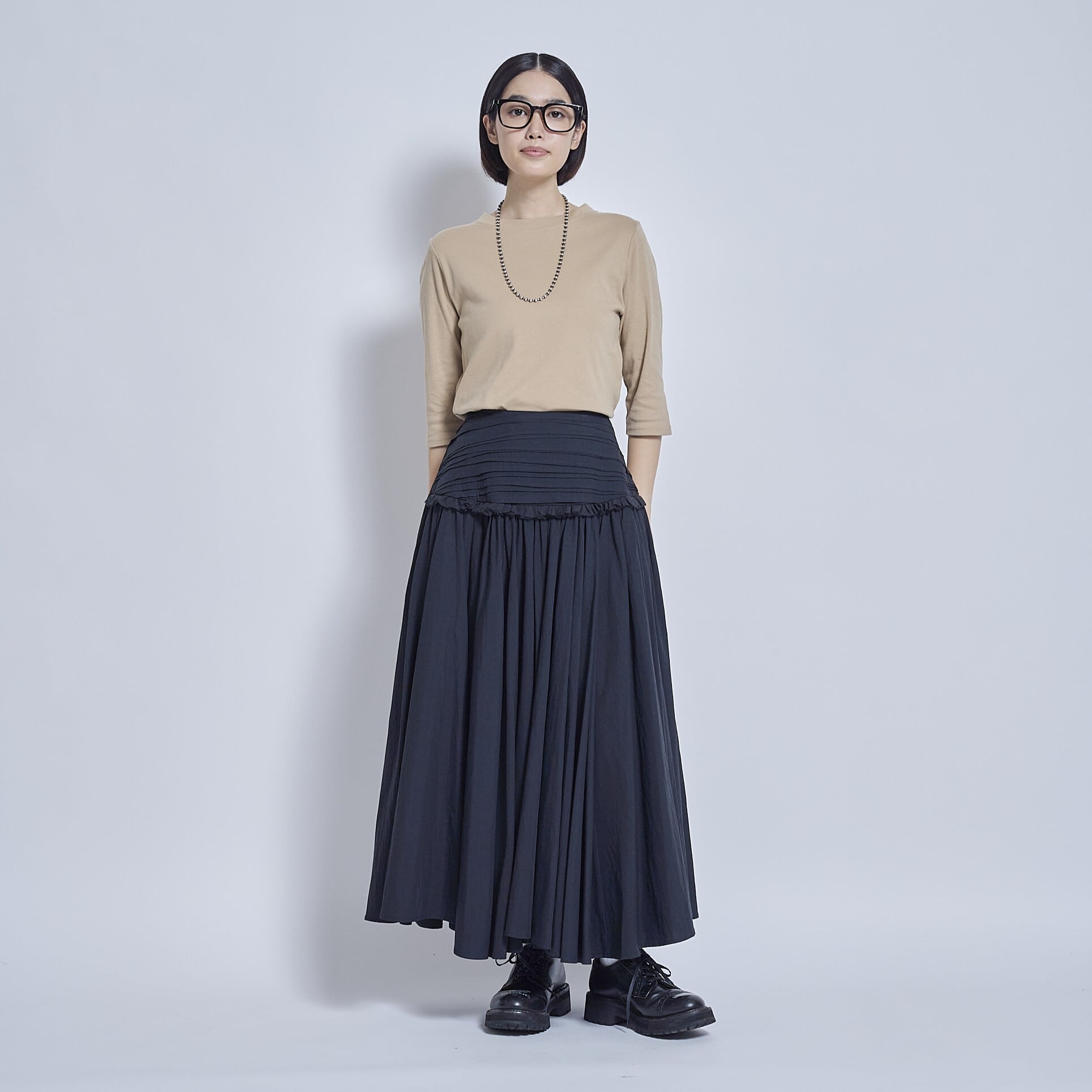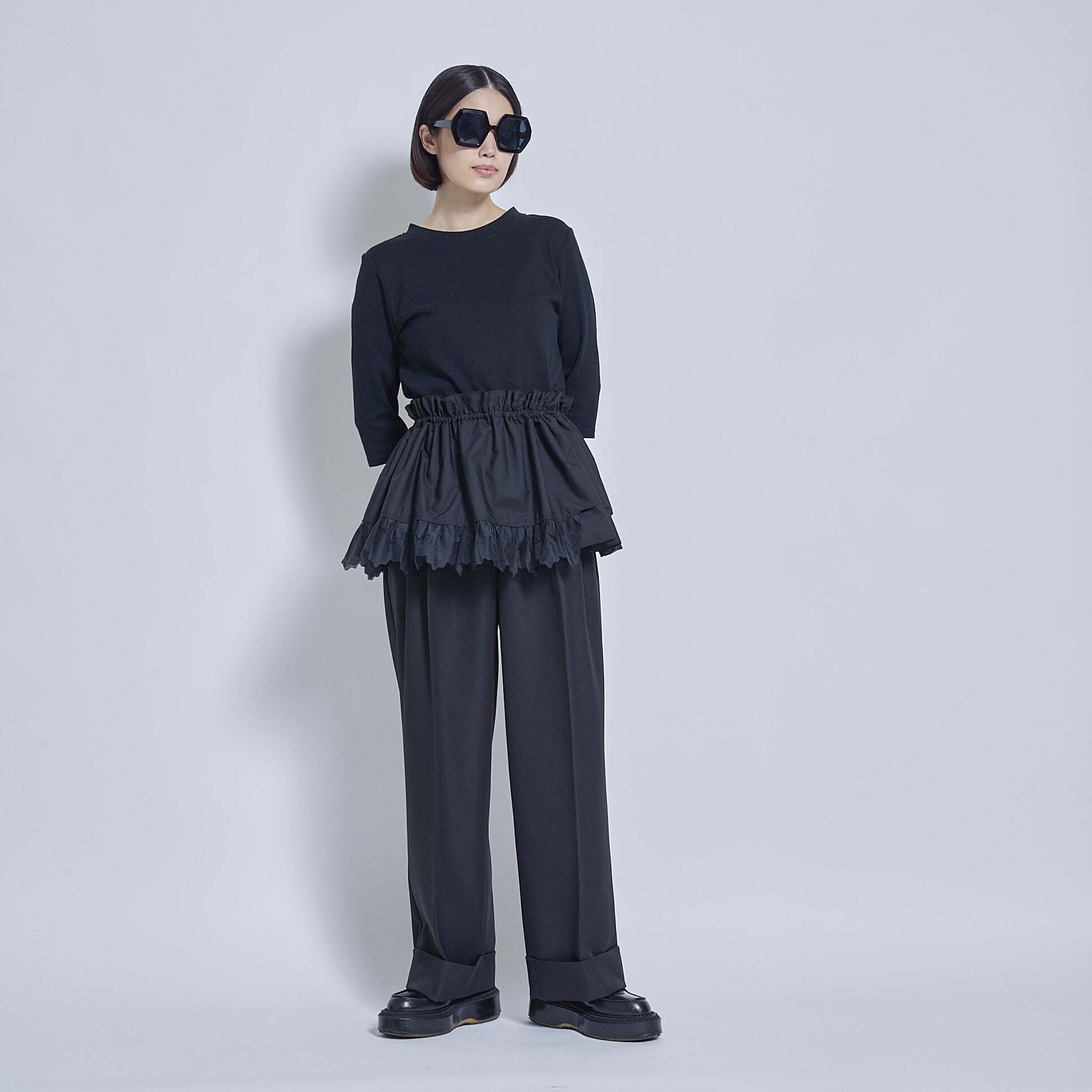 インナーとしても1枚着としても使いやすく、サロペットやワンピースとの相性も抜群。