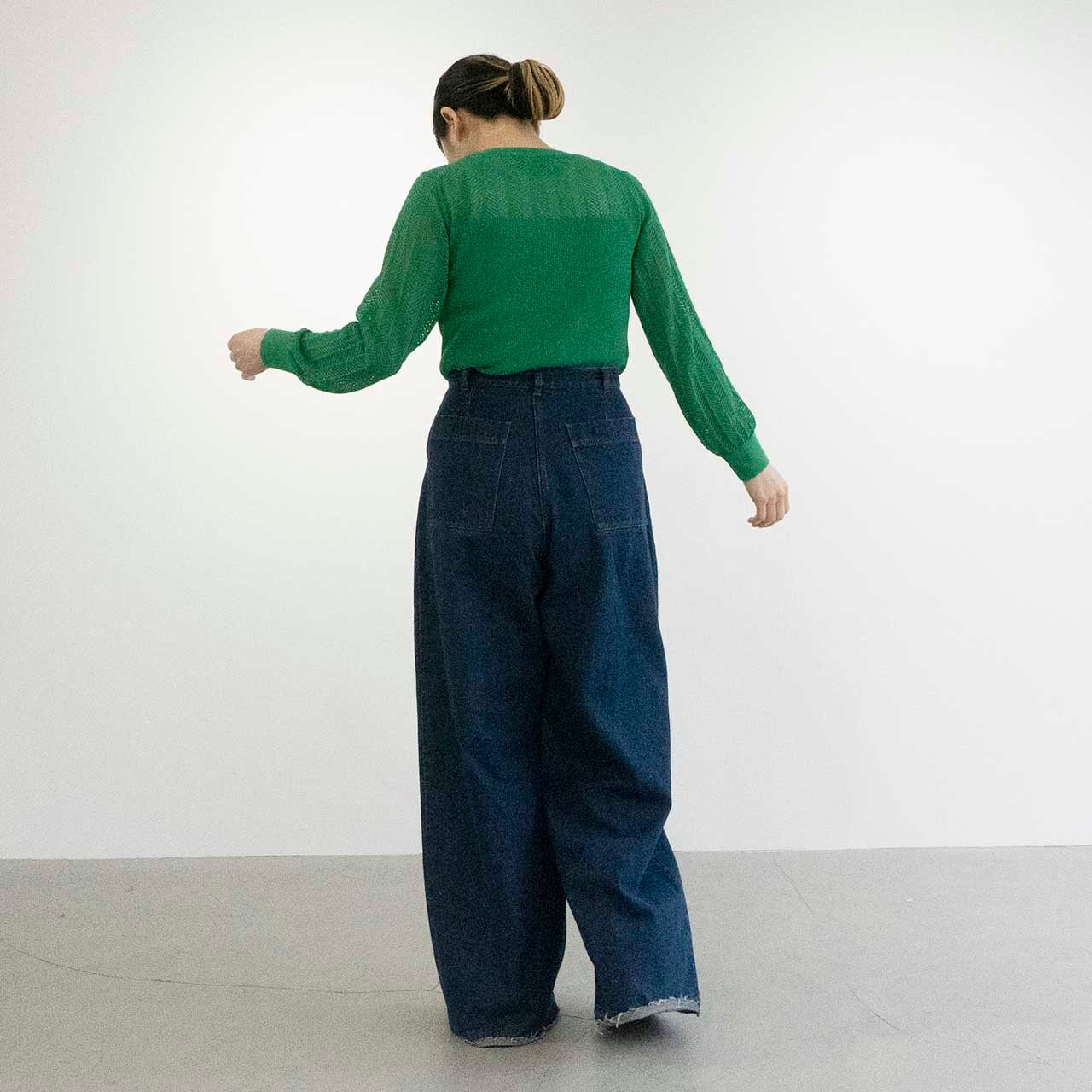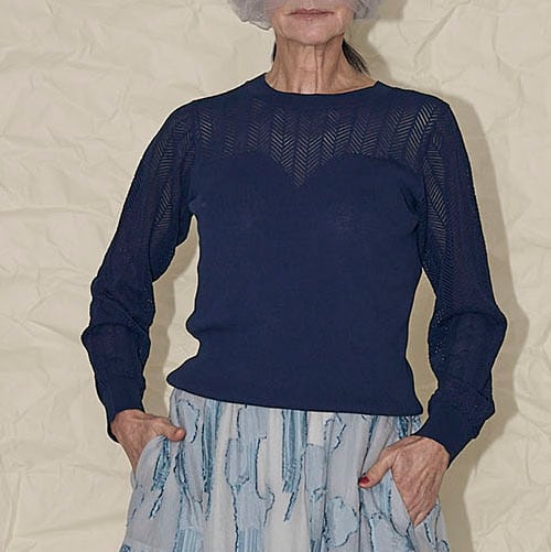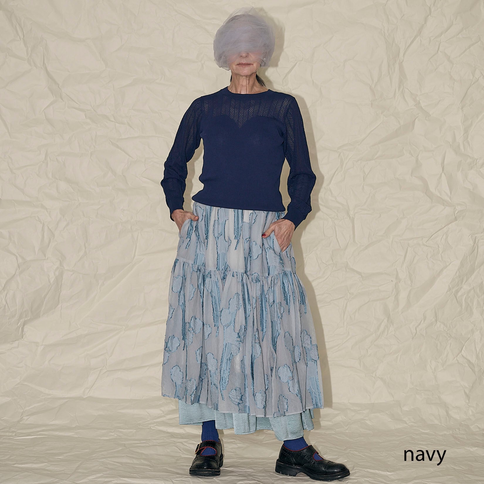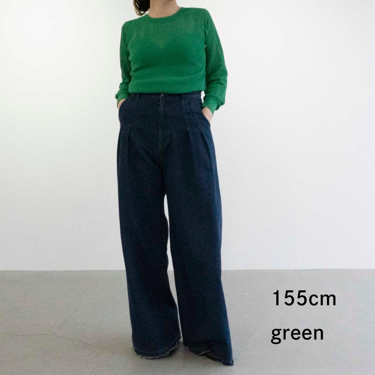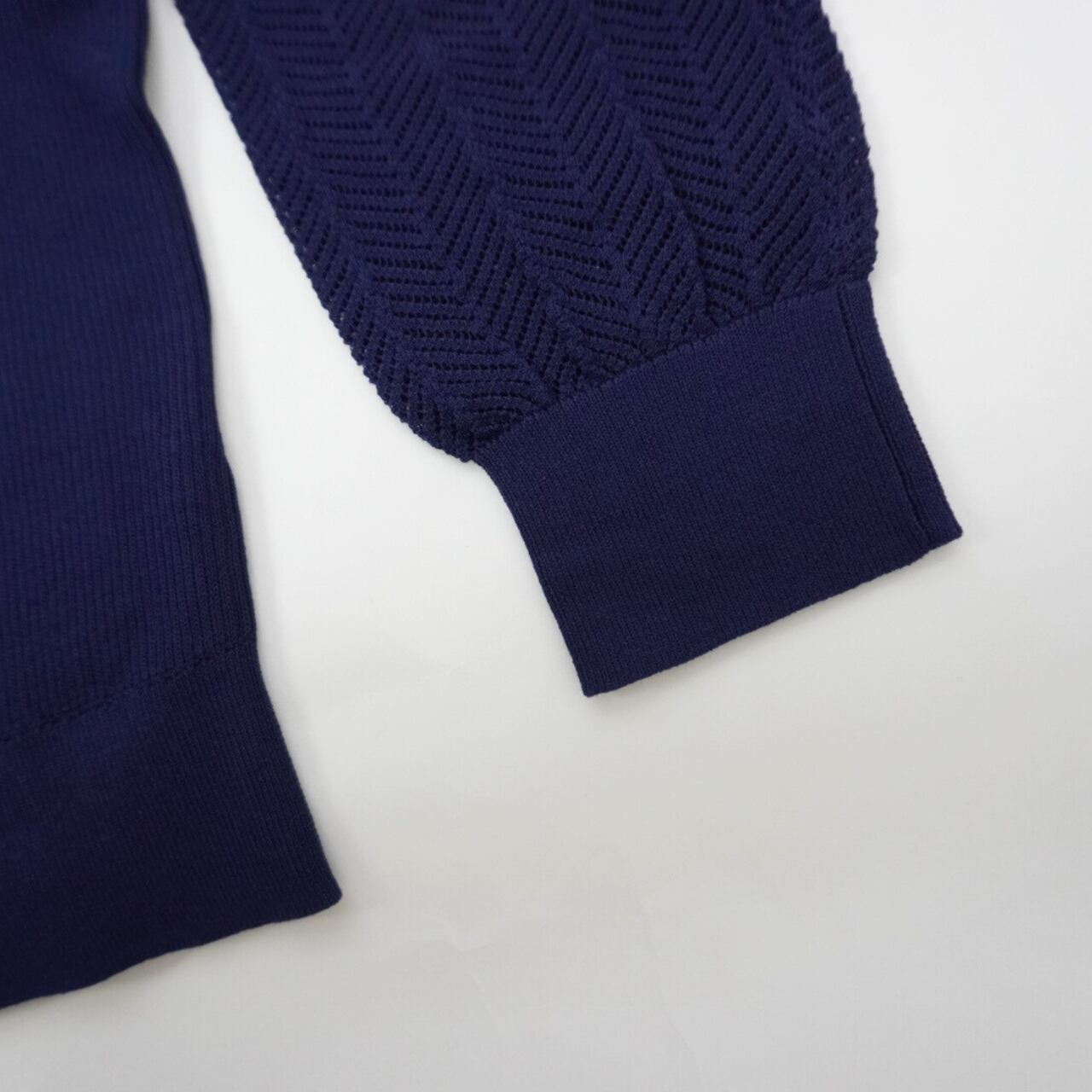 袖からバストまでのヘリンボーン部分には透け感があり、軽い風合いで使いやすいコットンニットです。