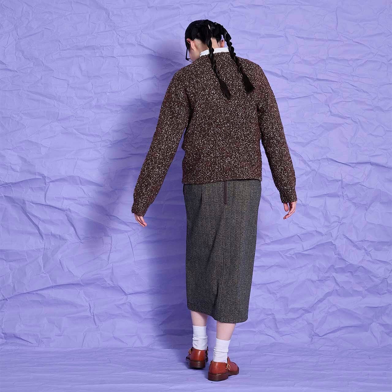 herringbone skirt brown 36【2243601】