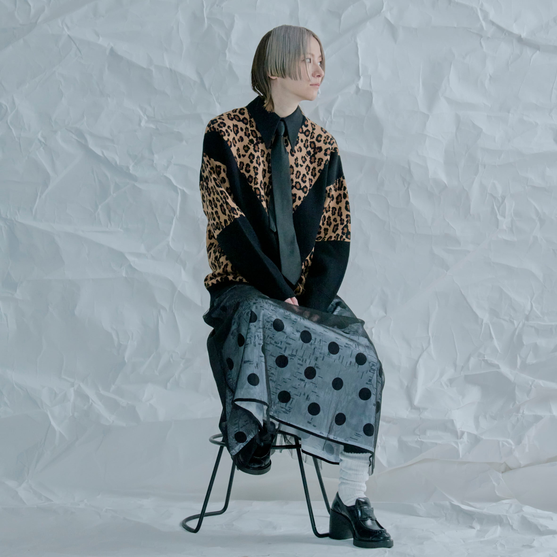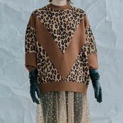 レオパードは定期的に出している大好きな柄です。今回はニットでオリジナルの柄を作りました。トーマスマグパイだけのオリジナルデザインの柄になっています。ニットは柄はどれもオリジナルで、毎回苦心しながらデザインしていますが、レオパードの柄は初めてのチャレンジです。定期的に着なくなる時期がありますが、数年おきにレオパードに対するブームがあるのか、今年の冬にまた着たいなと思いデザインしました。