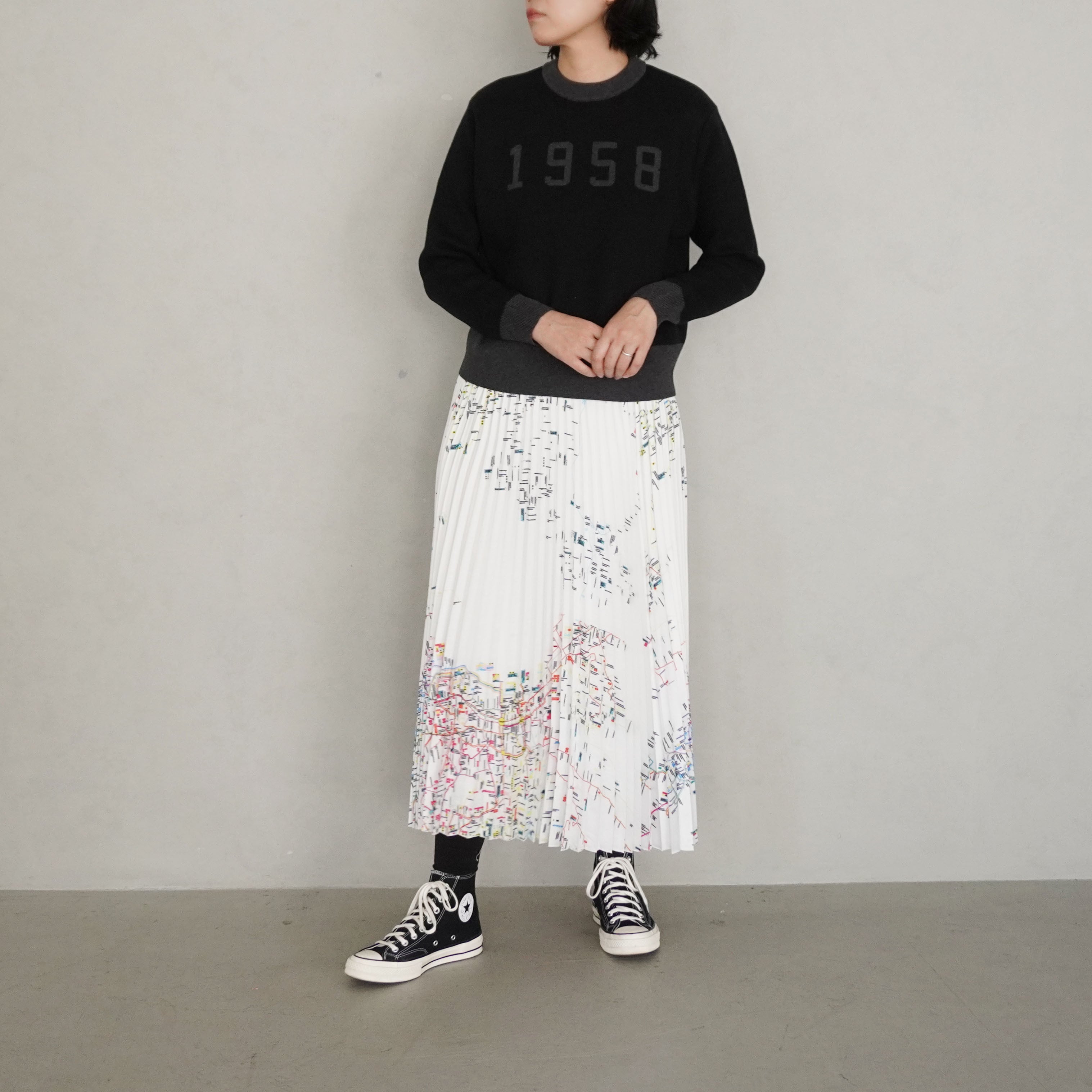 ジャストサイズの着丈なので、ボリュームのあるスカートのコーディネートがおススメです。