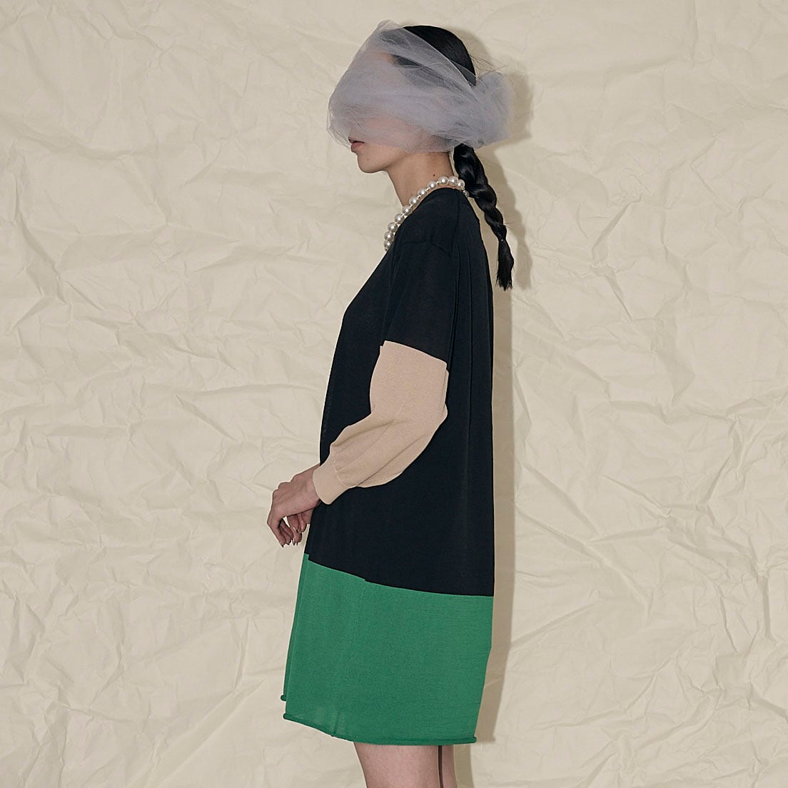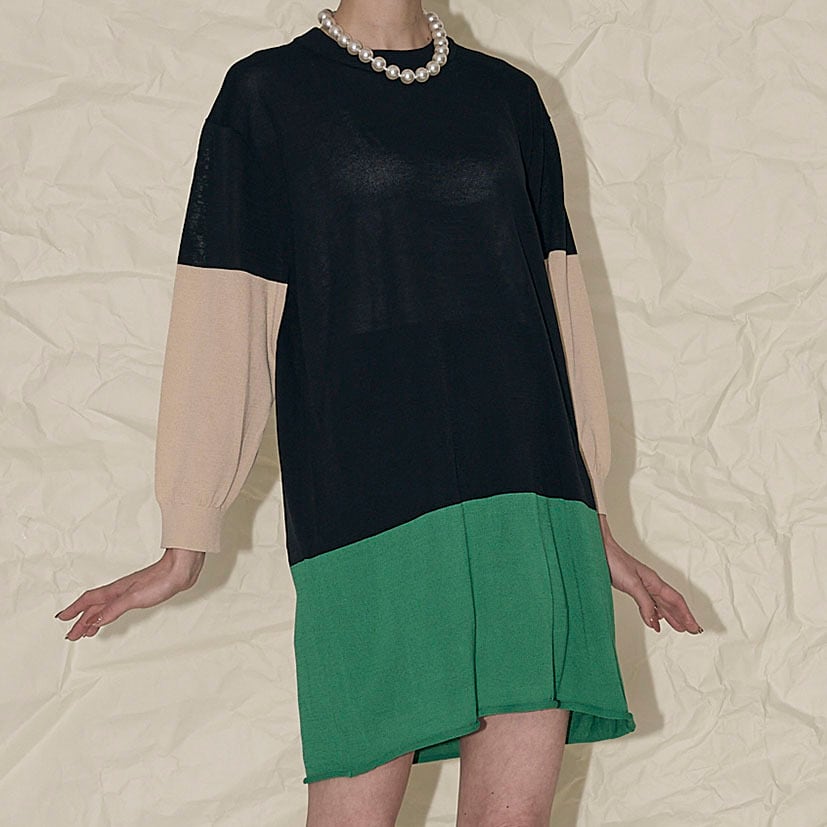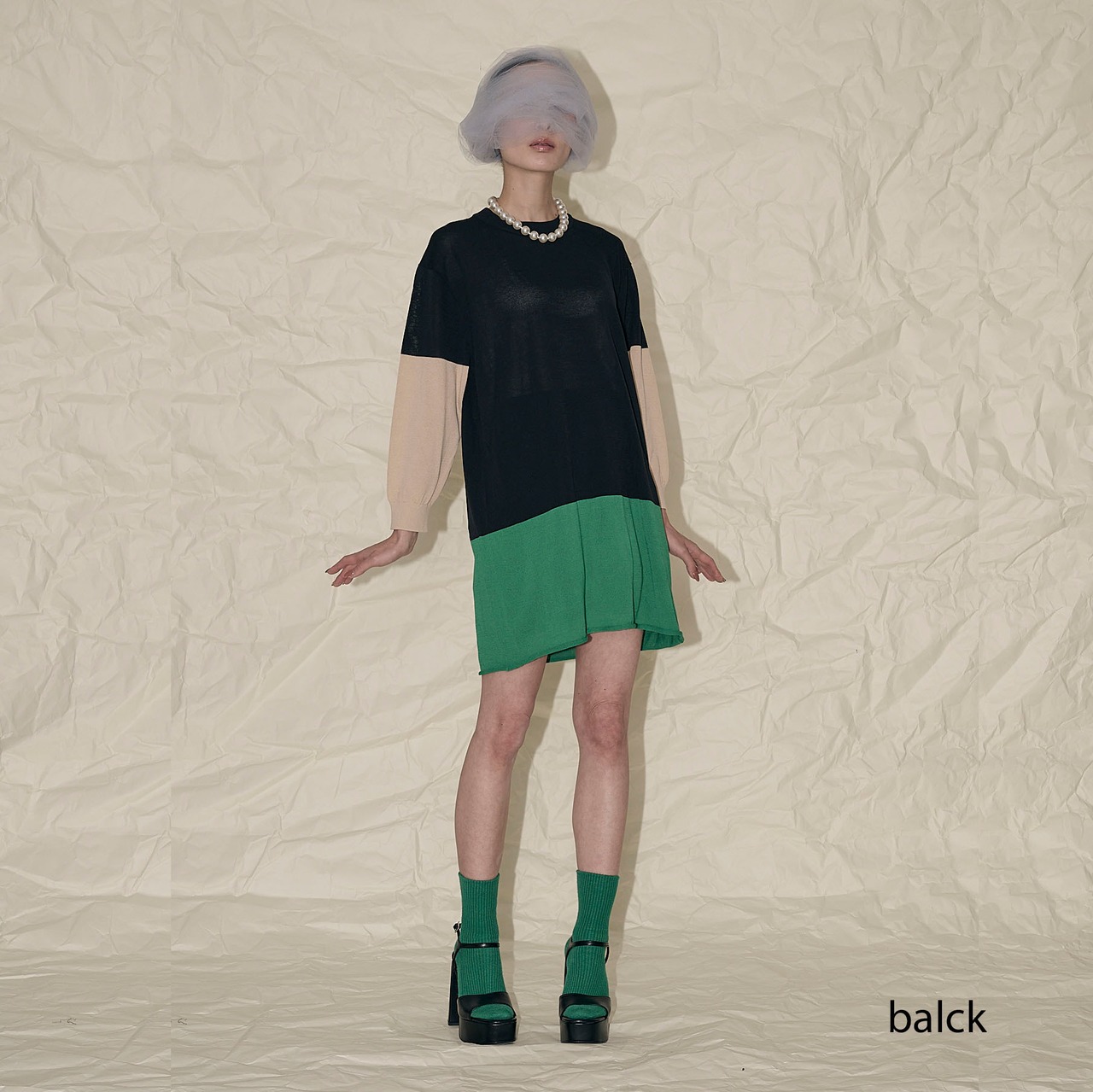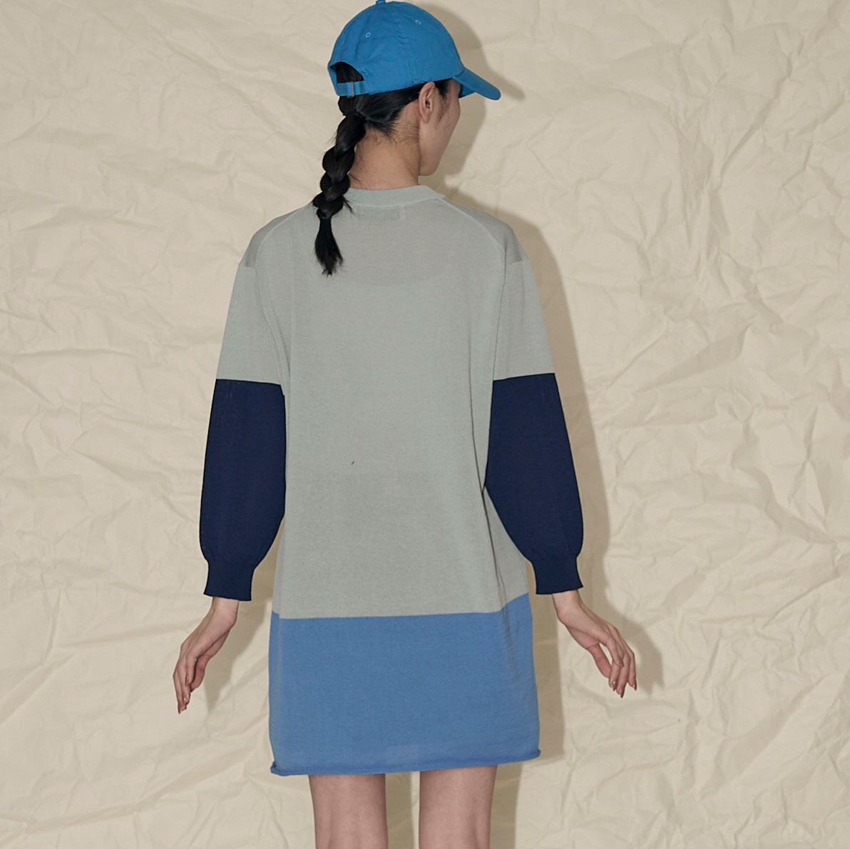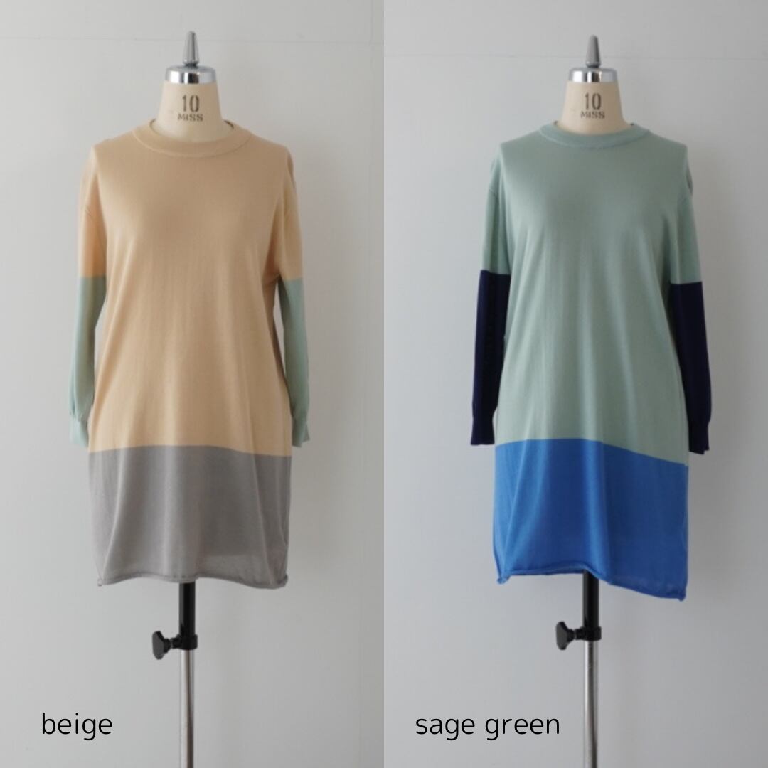 トリコロールカラーが鮮やかで、一枚でもインナーとしても使いやすいニットです。