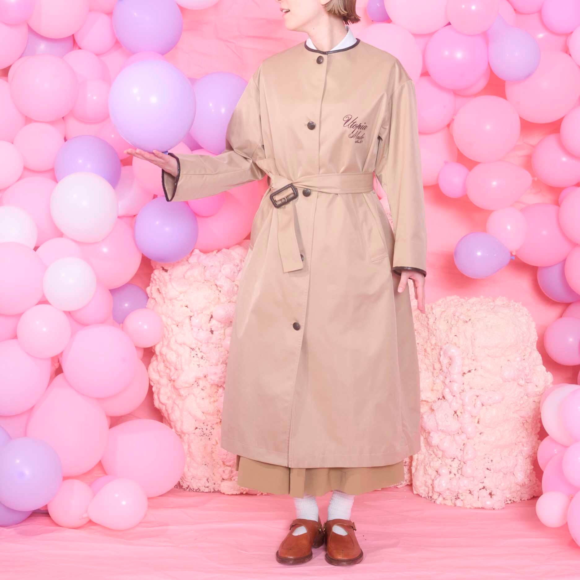 ベロアのバックラインが目をひくロングコートになります。
