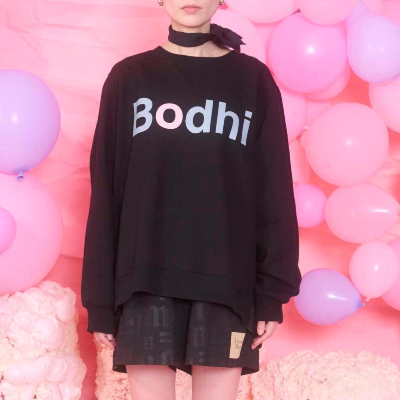 これまで販売してきた王道のスウェットの形のリピートです。これまで色々なサイズ感でスウェットを出してきましたが、今回出しているサイズが1番人気で継続してきた形です。メンズのLサイズ程度の身頃に、着丈はM程度で、女性が来てストレスのない横広のシルエット。ヒップにかかるリブ部分のワイズが広めなのでヒップ周りに締め付けやストレスがありません。ウエストとヒップ周りがほっそりと見える視覚効果で、展示会でのバイヤーでの評価が安定しています。袖は長め。体を華奢に見せてくれると人気のスウェットの形。このボディの形は完全にトーマスマグパイオリジナルです。前回から生地まで作るようになりました。しっかりとしていて、目の詰まった素材ですが、柔らかなタッチで着やすいと思います。何度洗っても、リブ部分の伸びや消耗感は少ないのがトーマスマグパイのオリジナルボディの特徴です。やや値段が張りますが、ボディは長く着ることができるという耐久性に自信を持っています。スウェットは真夏以外は毎回出していますが、アイテムとしては毎回1番のヒットセールスを出しています。