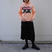 プルオーバーのスウェットより少し身頃が小さめのシルエットです。着丈は同じくらいです。袖丈は少し長めにしています。身頃をタイトにしているので、ひと折してスカートスタイルなどにも合うシルエットにしてみました。このサイズ感は、スタッフに大変人気だったのでリピートです。とても合わせやすくパンツ派の方にも向いています。フードは引き続き、ヒットアイテム。コートの下から覗くフードのスタイルはいつの時代も大好きですが、今年も継続して着たいアイテムのひとつ。冬の寒い日にもかぶっていたいし、ファッションとしても被りたいかもしれません。ヘッドコンシャスに、スカーフを頭に巻いたりするのがこの夏人気でしたが、バラクラバのヒット以来、継続してヘッドコンシャスは注目していきたいファッションだと感じています。なのでフードアイテムも仲間に加えていきたいと思いました。
