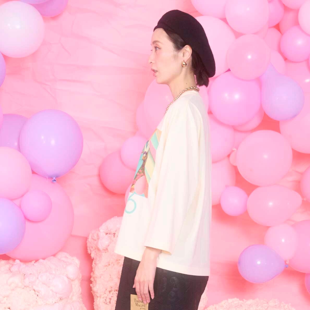 これまでにデザイナーが作っていないタイプの絵をモチーフに女の子がユートピアを想像してその空想の中に入り込んでいるイメージしています。