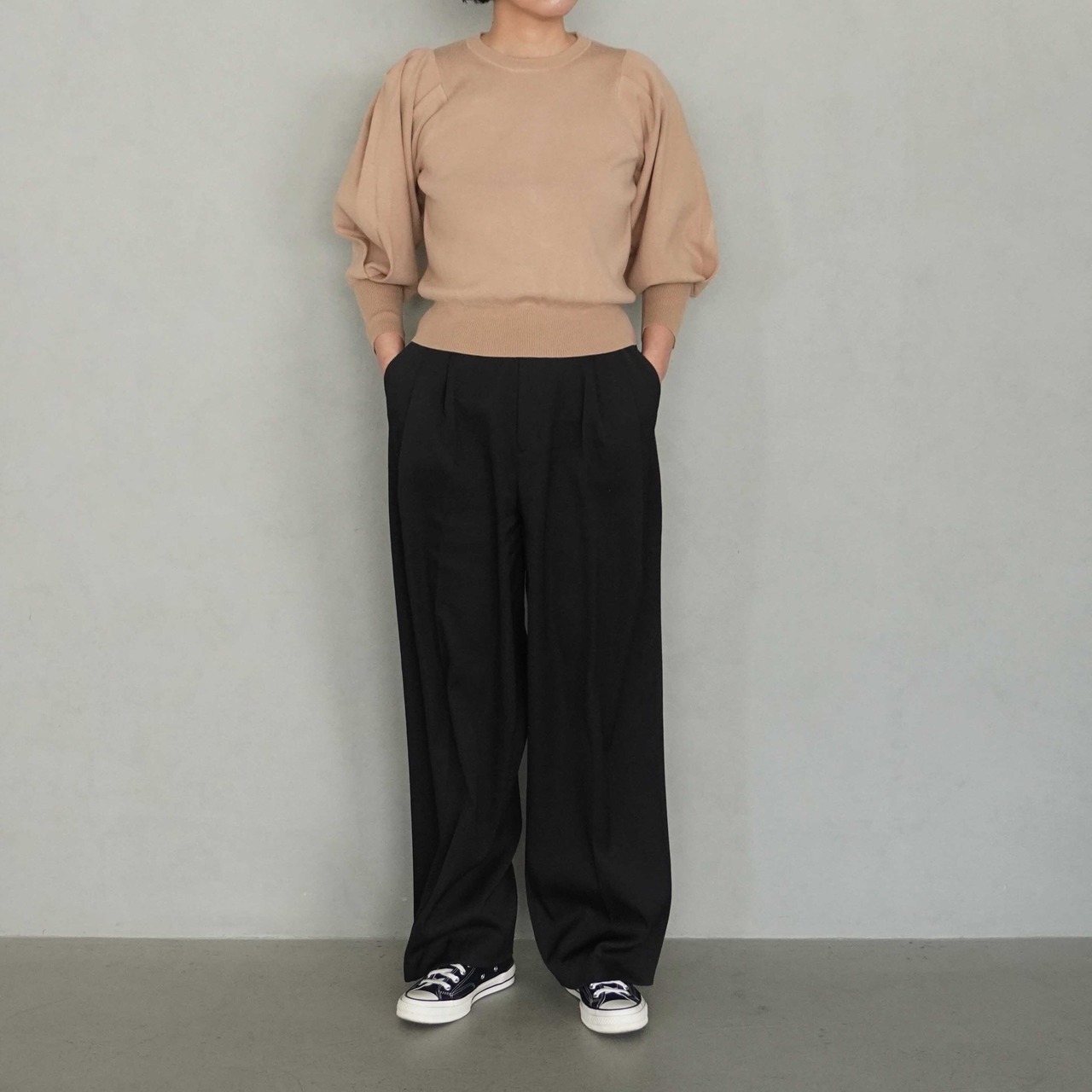 しっかりとした編地で、袖のボリュームのシルエットが美しいニットになります。